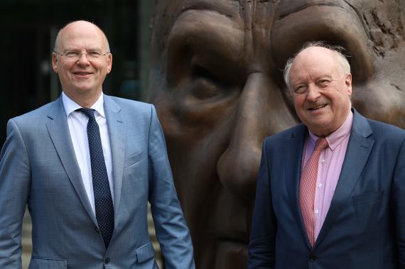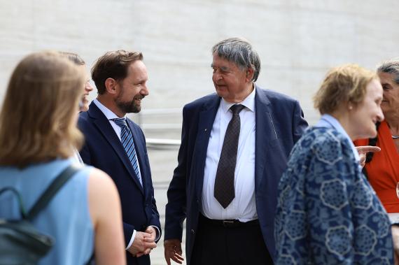 Dementsprechend konnte Prof. Dr. Norbert Lammert als Vorsitzender der Konrad-Adenauer-Stiftung bei seiner Eröffnungsansprache neben dem Künstler und verschiedenen Mitgliedern der Familie Adenauer auch Vertreterinnen und Vertreter der Rhöndorfer Stiftung unter den geladenen Gästen begrüßen. Dass es nach über anderthalb Jahrzehnten Vorbereitung nun endlich gelungen sei, den Adenauer-Kopf nach Berlin zu holen, erfülle ihn mit einem Gefühl stiller Genugtuung, führte er aus. Schon als Bundestagspräsident habe er sich nämlich in zähen Verhandlungen mit Berliner Behörden und mehreren Chefs des Bundeskanzleramtes dafür eingesetzt. Lammert bedankte sich insbesondere bei der Familie Adenauer für deren Hartnäckigkeit und Großzügigkeit in der Sache.
