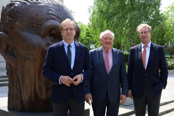 Der Vorstandsvorsitzende der Stiftung Bundeskanzler-Adenauer-Haus Dr. Stefan Vesper griff in seinem Grußwort diesen Gedanken auf und verwies dabei auf Adenauers Wohnhaus in Rhöndorf als Genius loci, wo man dem Geist und der Persönlichkeit des „Alten“ authentisch nachspüren könne. Dort sei im Übrigen auch ein kleiner Adenauer-Kopf (als Bronzebozzetto) zu sehen. Dr. Doreen Franz als Wissenschaftliche Projektleiterin ihrer Stiftung am Standort Berlin betonte, dass die „materialisierte Erinnerung“ an Konrad Adenauer unbedingt in die deutsche Hauptstadt gehöre, und erläuterte die Eckpunkte der neuen Dauerausstellung, die hier bis Ende 2023 eingerichtet werde.
