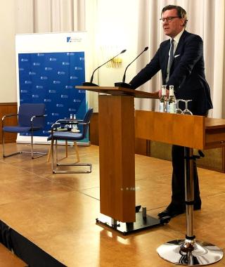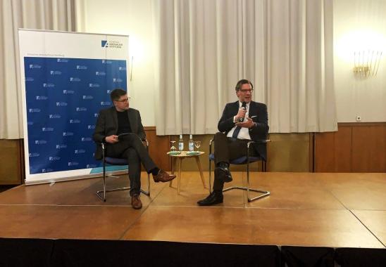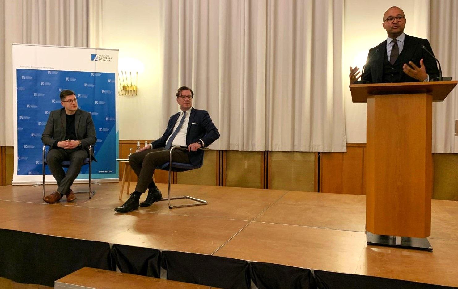 Nach der Begrüßung durch David Mbae-Straßenburg (Landesbeauftragter Hamburg) und einem Grußwort von Marc Lauterfeld (Sprecher der Altstipendiaten in Hamburg) sprach Lange über aktuelle Entwicklungen und Herausforderungen europäischer und deutscher Sicherheitspolitik.