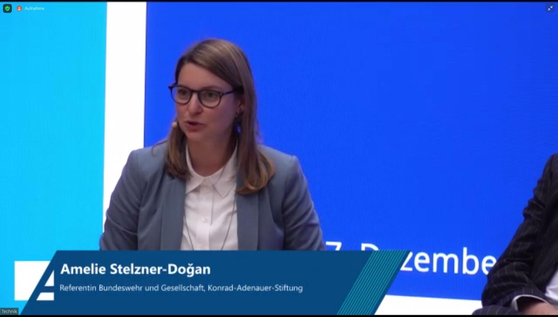 Hybride Bedrohungen, Cyberkriminalität und Terrorismus sind nur einige der komplexen Herausforderungen, denen unsere Gesellschaft gegenübersteht. Sie stehen exemplarisch für eine zunehmende Wechselwirkung äußerer- und innerer Sicherheit. Die Coronapandemie hat zusätzlich deutlich gemacht, dass auch die Grenze zwischen militärischer und ziviler Krisenbewältigung zunehmend verwischt. Gleichzeitig zeigt sich, wie wichtig die politische Vermittlung angesichts dieser neuen Bedrohungsformen für das Vertrauen der Gesellschaft in den Staat ist, sagte die Moderatorin Amelie Stelzner-Doğan, Referentin für Bundeswehr und Gesellschaft bei der Konrad-Adenauer-Stiftung.