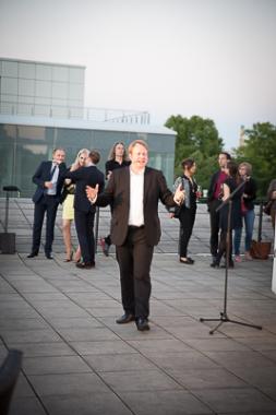 Schauplatzwechsel. Im Garten der Konrad-Adenauer-Stiftung finden nicht nur der Empfang und kulinarische Spezialitäten Platz, sondern auch die Preisverleihung zu Projekten der Zukunft. Wie kann man Europa den Bürgern näher bringen und wie wollen wir Europas Zukunft gestalten? Die Multimedia-Projekte im Rahmen der Wettbewerbe „Zukunft Europa“ und „Europa - Meine Wahl!“ wagen Ansätze für Innovation.