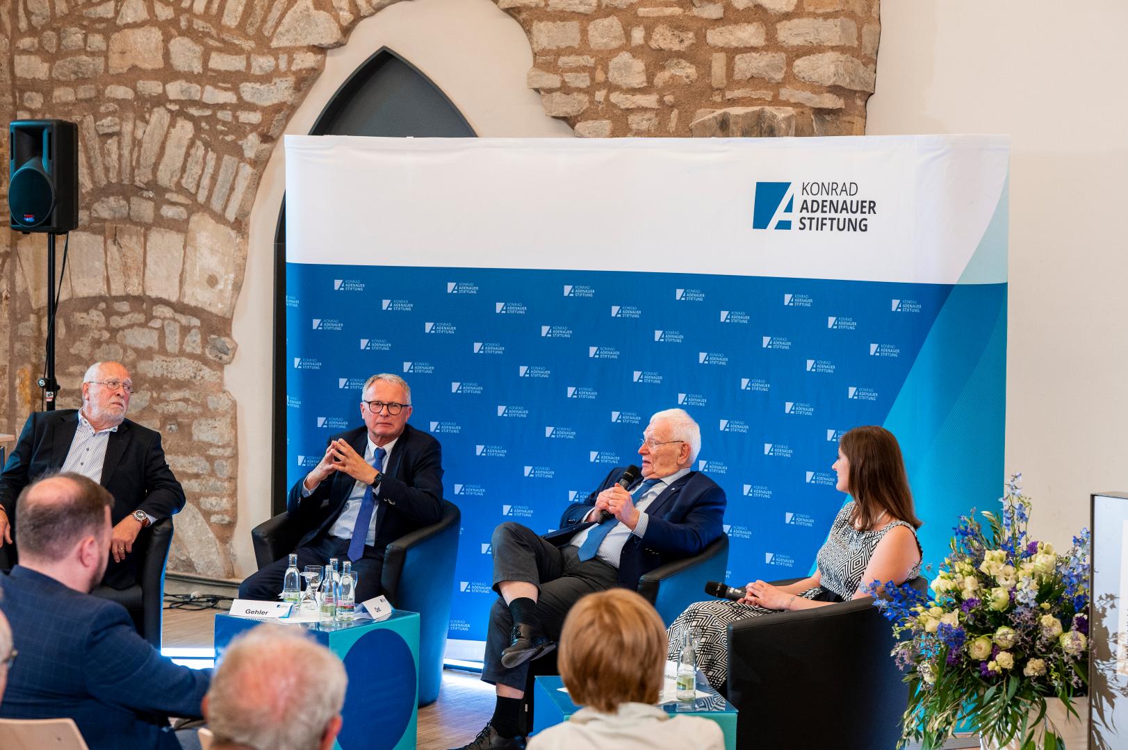 Anlässlich des fünften Todestages Helmut Kohls am 16. Juni lud das politische Bildungsforum der Konrad-Adenauer-Stiftung e.V. in Thüringen am Montagabend zu einem Zeitzeugengespräch im Erfurter Augustinerkloster ein. Mit der Veranstaltung wurden die Verdienste Kohls um Deutschland und Europa gewürdigt, auf seine historische Rede auf dem Erfurter Domplatz am 20. Februar 1990 zurückgeblickt und viele persönliche Momente mit dem „Kanzler der Einheit“ geteilt. Zu diesem Anlass stellte die Stiftung ihre Publikation „Helmut Kohl-1990-Erfurt – Leidenschaftlicher Patriot und Europäer“ vor, an der viele der anwesenden Zeitzeugen mitgearbeitet haben.