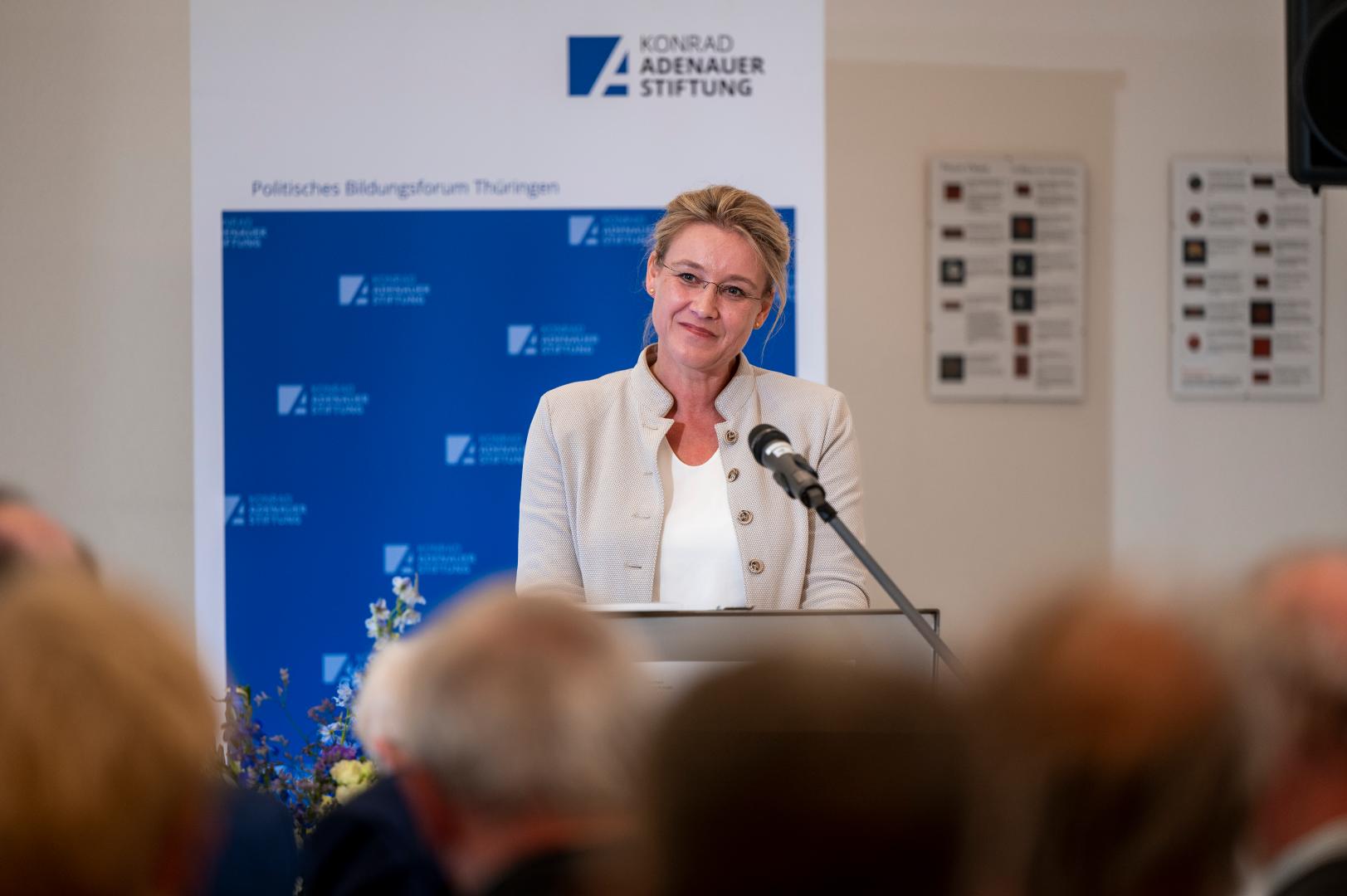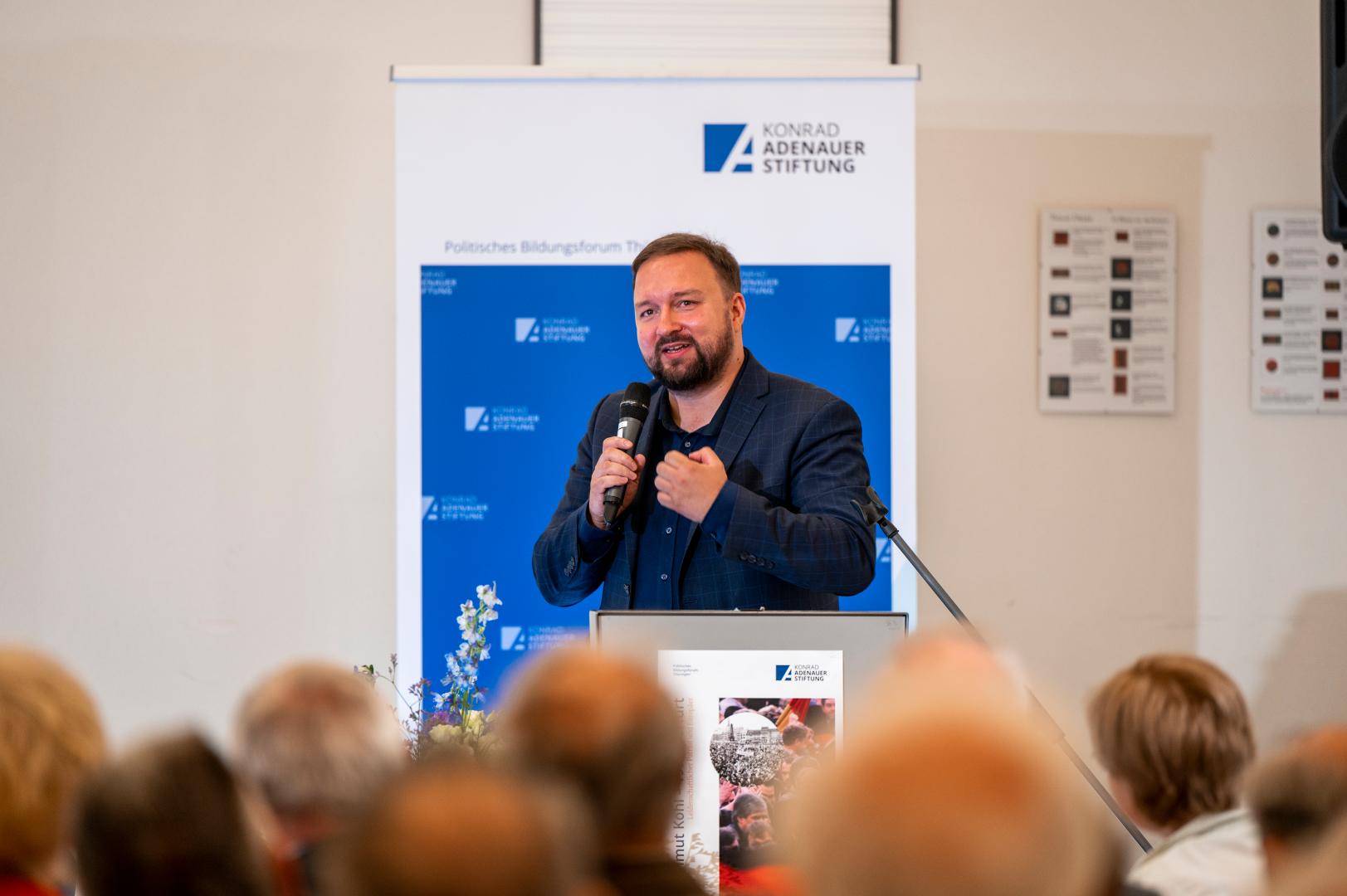 Das Schlusswort sprach Michael Hose, Vorsitzender der CDU im Erfurter Stadtrats, und würdigte besonders den Mut Helmut Kohls „einfach mal zu machen!“. Das sollte auch ein Vorbild für die Politik heute sein. Er betonte zudem Kohls Vision des geeinten Europas und sei sich sicher, dass der Kanzler im aktuellen Angriffskrieg Russlands gegen die Ukraine entschlossen auf der Seite der Ukrainerinnen und Ukrainer stehen würde.