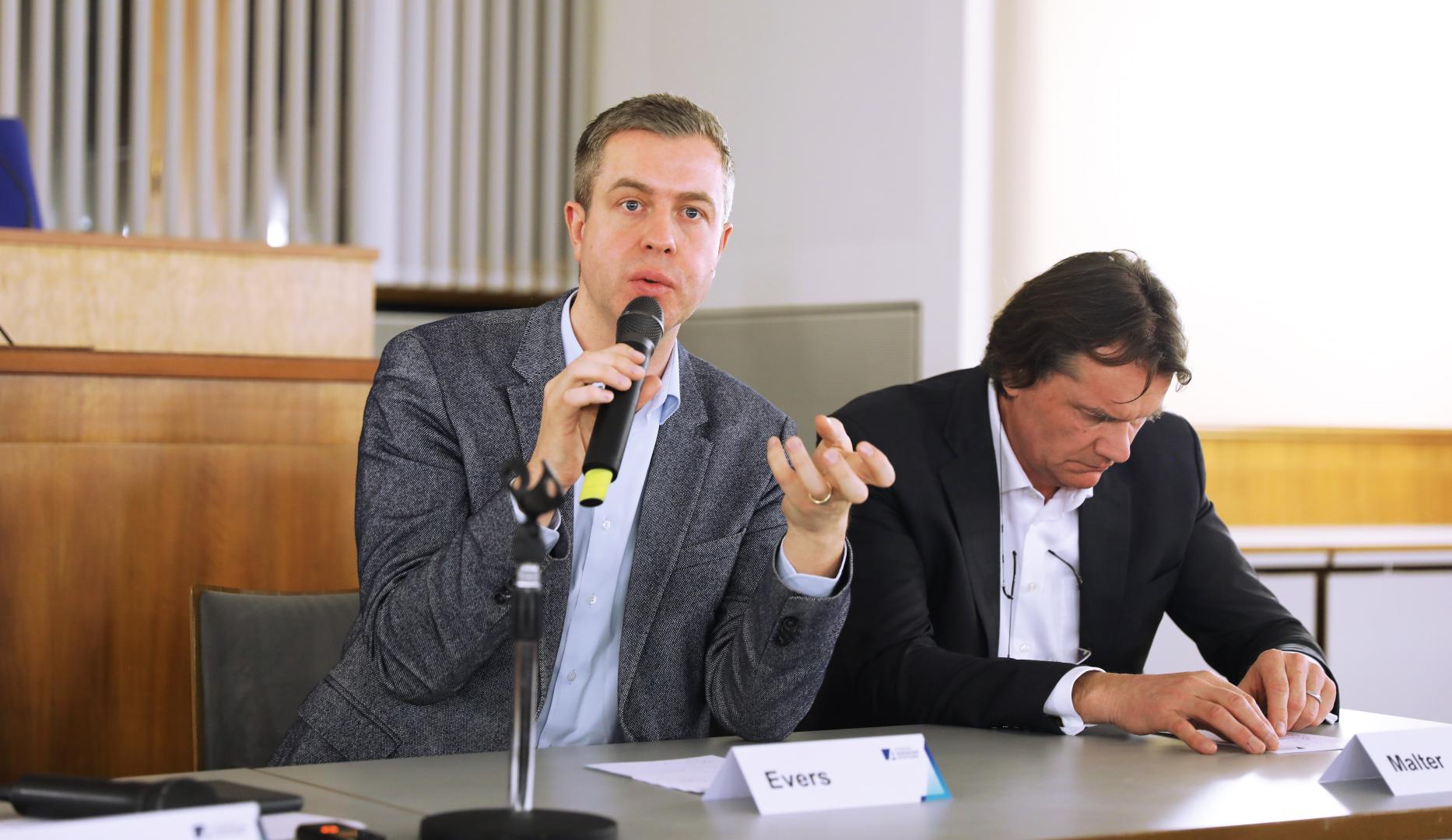 Außerdem äußerte Evers den Wunsch nach einer gesunden Mischung aus selbstgenutztem Wohneigentum und Mietanteilen in den Quartieren. Der Mietendeckel sei zwar ein Konjunkturprogramm für eine Steigerung der Eigentumsquote, er hätte sich aber einen anderen Weg hin zu diesem Ziel gewünscht. Der Abgeordnete kritisierte die Absicht der Berliner Stadtverwaltung, „den Rechtsstaat auf links zu drehen“.