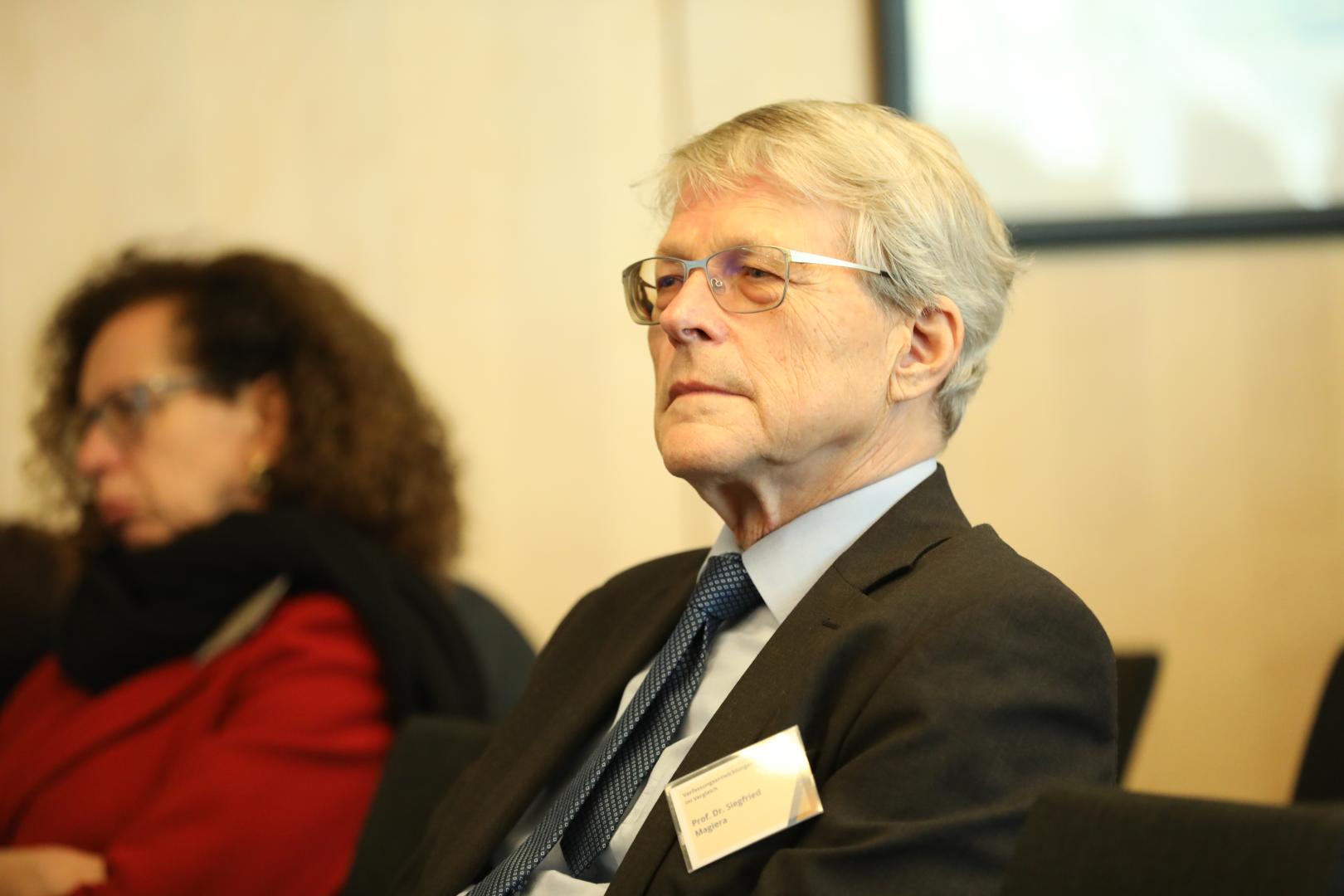 Professor Norbert Lammert, Vorsitzender der Konrad-Adenauer-Stiftung, verwies auf bemerkenswerte Unterschiede, wenn man die Zahl der Verfassungsänderungen in den jeweiligen Ländern betrachte. Während die spanische Verfassung nur zweimal reformiert worden sei, verzeichne die italienische Verfassung ein gutes Dutzend Reformen. Das Grundgesetz hingegen sei mittlerweile mehr als sechzig Mal geändert worden, womit sich sein Umfang ziemlich genau verdoppelt habe. „Aber ich habe noch niemanden getroffen, der sagt, das Grundgesetz ist nun auch doppelt so gut“, bemerkte Lammert. Als wesentliche Ursache für die Aufblähung des Grundgesetzes sieht er auch die „dauerhaften großen Koalitionen“ in der Bundespolitik. Zu groß sei damit die Versuchung, gemeinsam getroffene Vereinbarungen in der Verfassung zu verankern und diese Absprachen damit dem demokratischen Gestaltungsprozess zu entziehen.