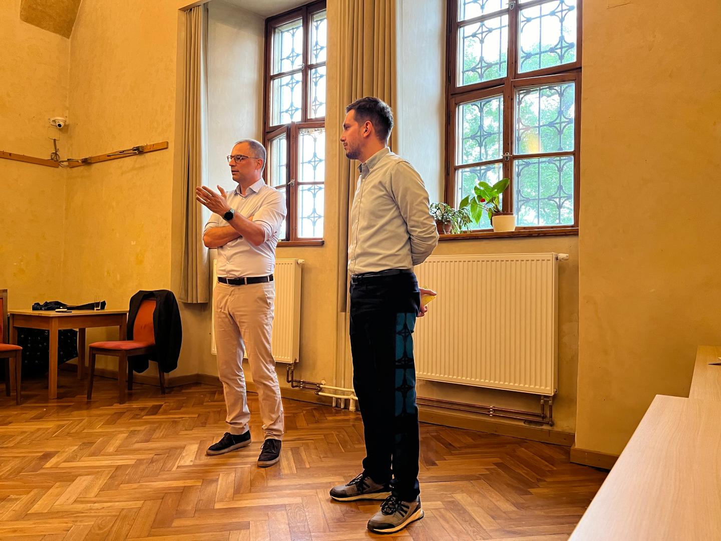 Am Freitag, dem 31.05.2024, ging zunächst Irène Mahano, Referentin des PBF Sachsen, in ihrer Begrüßung auf die Bedeutung der grenzüberschreitenden Zusammenarbeit in bewegten Zeiten ein. Nach der anschließenden Busfahrt nach Prag stand eine Führung durch das Palais Waldstein an. Dieses wurde im 17. Jahrhundert im Auftrag des böhmischen Adelsgeschlechts Waldstein errichtet. Seit 1992 befindet sich hier zudem der Senat der Tschechischen Republik, das Oberhaus des tschechischen Parlaments. Fortgesetzt wurde der Tag im Prager Emmauskloster, in welchem Tomislav Delinić, Leiter des Auslandsbüros Tschechien der Konrad-Adenauer-Stiftung e. V., die gegenwärtige politische Lage des Landes näher beleuchtete. In seinem Impuls sprach er das Verhältnis zwischen Tschechien und der Slowakei an und begründete die hohe Spendenbereitschaft aus der Gesellschaft für die Ukraine. Im Anschluss wurde Marcel Ladka, Leiter des Kabinetts des Ministers für Umwelt und stv. Parteivorsitzenden der christdemokratischen KDU-CSL, begrüßt. Er gab einen Überblick über die derzeit regierende fünf-Parteien Regierung und das Wahlbündnis aus KDU-CSL, der liberalen TOP09 und konservativen ODS und ging auf Besonderheiten in der tschechischen Parteienlandschaft ein. Auch thematisierte er die positive Einstellung der tschechischen Regierung zur Atomenergie und die kontroversen Diskussionen um die mögliche Einführung des Euros im Land. Im Anschluss hatten die Teilnehmenden in einer Diskussionsrunde die Möglichkeit, Fragen an die Referenten zu stellen.