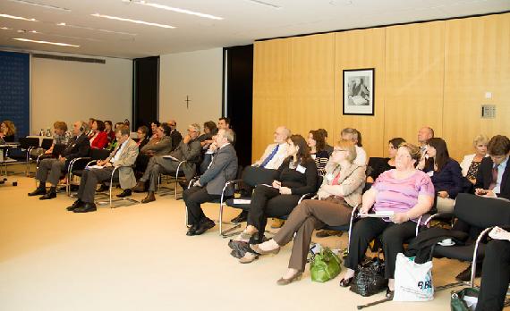 Magister Franz Wolf-Maier, Geschäftsführer des Österreichischen Integrationsfonds, stellte viele Parallelen zwischen der österreichischen und der deutschen Integrationspolitik fest. Ein Fünftel aller Bewohner Österreichs habe einen Migrationshintergrund. In Großstädten wie Wien erreiche die Quote fast 40% der Bevölkerung. Vor allem unter Zuwanderern nichtdeutscher Muttersprache gebe es jedoch erhebliche Probleme, so werde Bildungsarmut in Österreich regelrecht „vererbt“. Auch in Österreich habe jedoch ein Umdenken stattgefunden. Symbol für die neue „Willkommenskultur“ seien die neuen „Bürgerhäuser.“ Diese sind als erste Anlaufstellen für Migranten gedacht. Mit gezielten Imagekampagnen sollen Integration und Identifikation von Zuwanderern gestärkt werden. Nachholbedarf sah Wolf-Maier bei der Ausbildung von Jugendlichen aus Zuwandererfamilien zu Fachkräften. Die duale Ausbildung könne dabei als gutes Beispiel dienen.