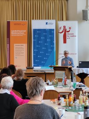Die anschließende Diskussion zwischen Andrea Frenzel-Heiduk (Ministerialrätin bei Ministerium für Soziales, Gesundheit und Gleichstellung Niedersachsen), Prof. Dr. Brenssell, Anja Wessel-Jorissen (Verbund der Nds. Frauen- und Mädchenberatungsstellen gegen Gewalt) und Anna Maierl (Kommunale Koordinierungsstelle IK der Stadt Göttingen), moderiert von Nicole van der Made (Vorstand des Landesfrauenrates Nds.), befasste sich mit verschiedenen Aspekten im Zusammenhang mit der IK, wodurch die Komplexität und Vielfalt der Thematik sichtbar wurde.