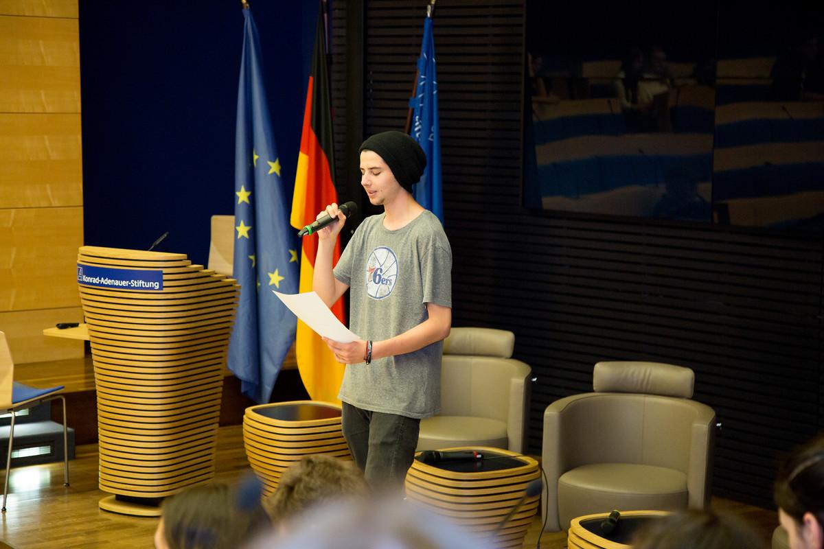 Für die meisten, die hier wohnen, symbolisiert es Heimat, Gemeinschaft, sowie Demokratie und Grundrechte. Für andere vielleicht ein Symbol der Europäischen Union, von florierender Wirtschaft. Aber trotzdem hat fast jeder die Geschichte Deutschlands im Hinterkopf. Die Geschichte, die Leute zur Äußerung einfacher Stereotypen verleitet, wie zum Beispiel, Deutsche würden gerne Befehle befolgen, was ich neulich von ausländischen Bekannten gehört habe. Aber sie bringt Leute auch dazu, Menschen, die aus Deutschland anreisen, oder dort wohnen, als Nazis zu bezeichnen. Leider sind viele Deutsche daran gewöhnt, auch meine Generation, die dritte oder vierte nach der NS-Zeit. Jedoch nimmt das Ganze einen anderen Charakter an, wenn man als Antwort auf diese Beleidigung die Tatsache hat, dass man jüdisch ist.