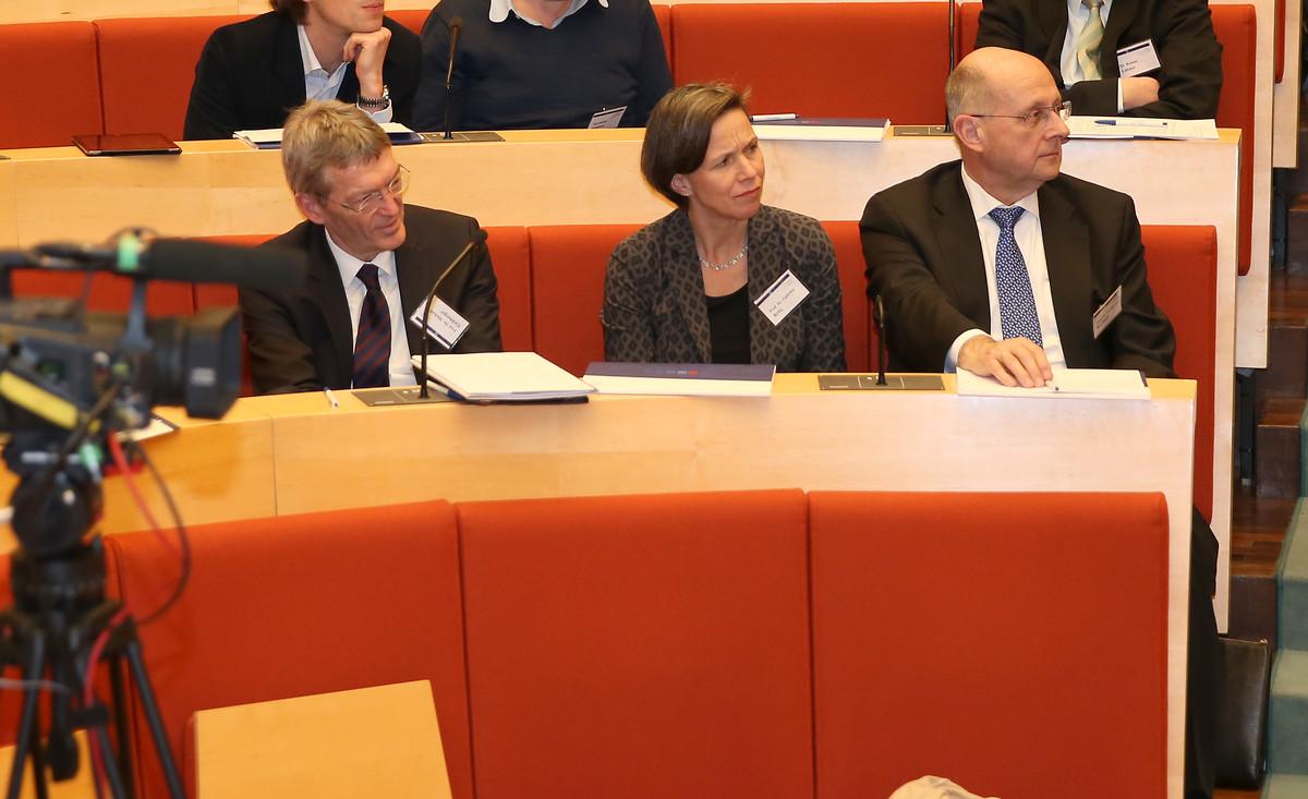 Über die Karlsruher Urteile zu Äußerungen von Bundespräsident Joachim Gauck und Bundesfamilienministerin Manuela Schwesig, die sich mit scharfen Worten gegen die NPD gewandt hatten, diskutierten Bundestagspräsident Prof. Dr. Norbert Lammert und der ehemalige Verfassungsrichter Prof. Dieter Grimm vom Wissenschaftskolleg zu Berlin. Lammert stimmte den Urteilen, mit denen Klagen der NPD abgewiesen worden waren, im Ergebnis zu. Aber er mache sich gleichwohl Gedanken über die Meinungsäußerungsfreiheit von Amtsinhabern. „Ich kann nichts damit anfangen, dass das Neutralitätsgebot Inhaber von Staatsämtern daran hindert von ihrem Grundrecht auf Meinungsfreiheit Gebrauch zu machen“, sagte der Bundestagspräsident. In seinem Amt vertrete der Amtsträger ja zum Beispiel in Form von Reden die Staatsauffassung, formuliere diese aber im Kontext seiner Meinungsfreiheit. Zudem stünde der Staatsmann auch in einem politischen Wettbewerbssystem.