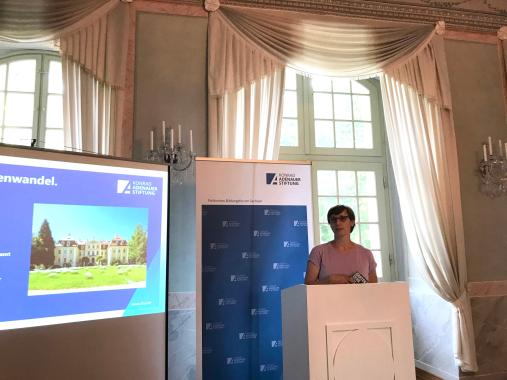 Luisa Tiesies, freiwilligendienstleistende im Politischen Bildungsforum Dresden der Konrad-Adenauer-Stiftung hat diese Veranstaltungsreihe mitkonzipiert und eröffnete die Veranstaltung. Nachdem sie die Referentinnen und den Moderator vorstellte, umriss sie das Thema und übergab an Frau Schuster vom Schlösserland Sachsen, welche zur Begrüßung ein Grußwort hielt.