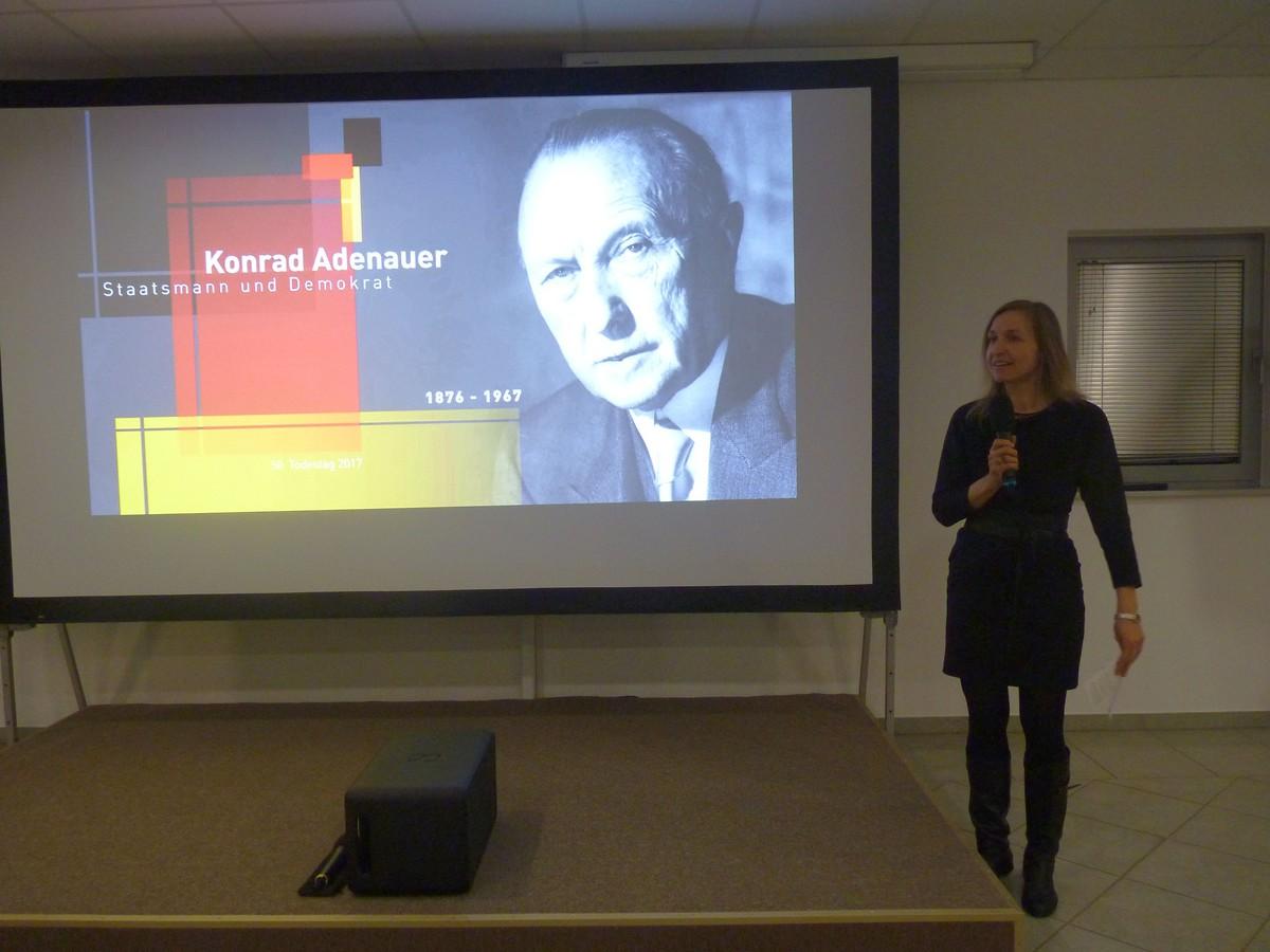 Anlässlich des 50. Todestages Konrad Adenauers luden das Politische Bildungsforum Thüringen und die Point Alpha Stiftung zu einer multimedialen Präsentation über das Leben des Staatsmannes ein. Diese wurde von Ingo Espenschied, Politologe und Journalist, präsentiert und beleuchtete das bewegte Leben Adenauers.