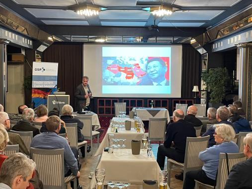 In seinem Vortrag zeichnete Dr. Jaeger ein vielschichtiges Bild der politischen Lage im Nahen Osten. Als Publizist, Autor und Lehrbeauftragter an der Universität Bonn verband er aktuelle politische Entwicklungen mit historischen Einordnungen und machte deutlich, dass die Region von einer hohen Dichte an Konflikten geprägt ist, in denen zahlreiche Akteure mit teils unvereinbaren Interessen agieren. Stabil tragfähige Lösungsansätze seien dabei bislang kaum erkennbar.