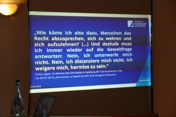 Nach der Einführung von Martin Hornhues, Vorsitzender des Verbandes Bremen-Burglesum, der die Polarisierung in der Gesellschaft allgemein ansprach und eine Nicht-Benennung von Linksextremismus in den Bremer Medien kritisierte, übergab er das Wort an Ralf Altenhof. Dieser referierte zum Bremer Weg der „Linksextremismusbekämpfung“, der darin bestehe, über Jahre hinweg Gruppierungen schlicht aus den Verfassungsschutzberichten zu streichen, wiewohl diese (zwar nicht mehr so stark wie früher) weiterhin in Bremen aktiv seien. So verringerte sich die Zahl von rund 1100 Linksextremisten in 2007 auf etwa 240 gewaltbereite Linksextremisten in 2022. Jüngst musste der Senat zugeben, dass es in Bremen insgesamt ca. 300 Linksextremisten gebe – also nicht nur die 240 gewaltbereiten, die im Verfassungsschutzbericht genannt werden. So agiere kein anderes Bundesland oder der Bund. Das Fazit müsse lauten, dass die Verharmlosung linksextremistischer Kräfte in Bremen einem Skandal gleiche: Einerseits werde nicht hinreichend über das ganze Spektrum des Linksextremismus (gewaltorientierter und nicht gewaltorientierter) aufgeklärt, andererseits gebe es keine grundsätzliche Abgrenzung, ja zum Teil sogar Zusammenarbeit mit diesen. Ein Mangel an Präventionsangeboten vervollständige diese Problematik.