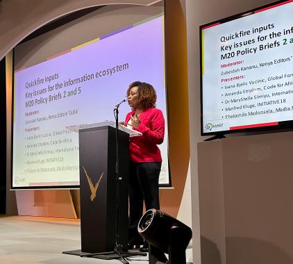 We at KAS Media Africa were thrilled to support this initiative, organised by South African National Editors’ Forum (Sanef) and Media Monitoring Africa (MMA), and bring international perspectives into the room. For instance, among our participants were Anja Wehler-Schoeck (Tagesspiegel, Berlin) and Kara Ballarin (Die Rheinpfalz, Ludwigshafen) – both from Germany – as well as Gia Thom (Impress) from the United Kingdom and Zubeidah Kananu (Kenya Editors Guild). Kananu presented quickfire inputs on key issues for the information ecosystem on stage. Wehler-Schoeck attended a panel discussion about assaults on journalists' safety.