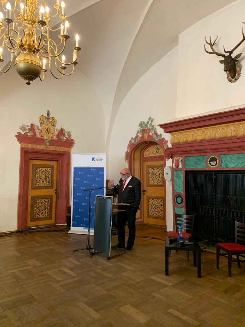 Günter Nooke ging in seinem Impuls zunächst auf das Ende der DDR und die politische Situation im Sommer 1989 ein. Er erzählte von seiner Zeit in kirchlichen Oppositionsgruppen und als Mitglied des Bündnis 90. Laut ihm seien die Ereignisse 1989/90 noch ein Jahr vorher unvorstellbar gewesen. Weiterführend ging er ebenfalls auf die aktuellen Herausforderungen Deutschlands ein. Die Sozialisation in der DDR und damit einhergehende soziale und kulturelle Unterschiede zwischen Ost und West erfordern es, so Nooke, stärker in den Dialog mit Menschen aus dem Osten zu gehen. Notwendig sei es jedoch auch, positive Geschichten zu erzählen und mit Stolz darauf zu blicken, dass durch die Friedliche Revolution ein Leben in Einigkeit und Recht und Freiheit für viele Ostdeutsche Realität wurde.