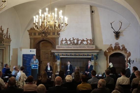 „Die deutsche Einheit war eine riesige Erfolgsgeschichte. Wir dürfen sie uns nur nicht kaputt reden lassen“ – setzte Ministerpräsident Michael Kretschmer den Ton für die Podiumsdiskussion „Meine Einheit, deine Einheit“ am 1. Oktober 2020. In diesem Geist lief das ganze Gespräch im prächtigen Hasensaal des Schloss Augustusburgs: vorausschauend, nicht retrospektiv.