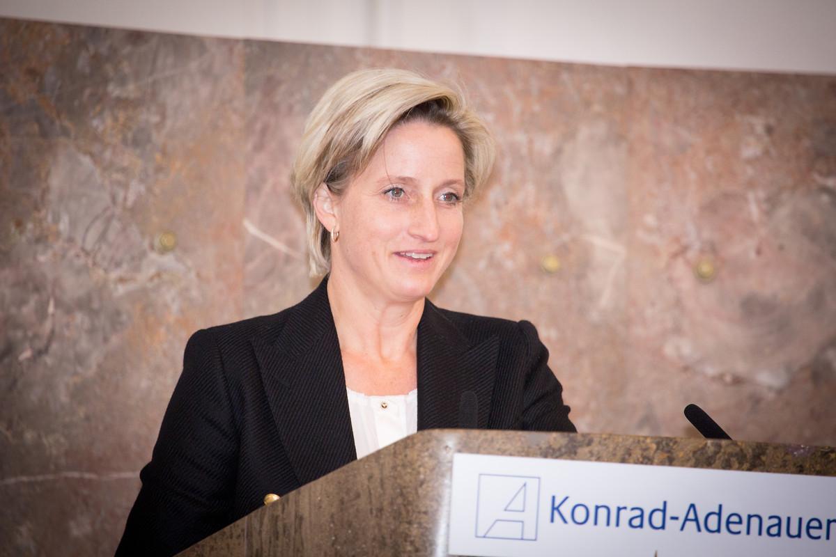 Traditionsbruch und Innovation würden bei GEZE Hand in Hand mit einer gelebten Nachhaltigkeitskultur gehen, so Hoffmeister-Kraut: Die digitalen und "intelligenten" Systeme trägen - fast schon automatisch - zur Energieeinsparung bei, die Eigenkapitalquote von 80 Prozent mache die Firma äußerst unabhängig und statt kurzfristiger Gewinnmaximierung hätten langfristige Erträge Vorrang. Zudem engagiere sich die GEZE enorm in der Ausbildung künftiger Fachkräfte und unterhalb der Werkstore fördere Vöster-Alber kulturelle sowie medizinisch-soziale Einrichtungen, Schulen, wohltätige Sportereignisse und vieles mehr: "Mit Brigitte Vöster-Alber ehrt die Konrad-Adenauer-Stiftung heute eine in vielerlei Hinsicht vorbildliche Familienunternehmerin", schloss Hoffmeister-Kraut.