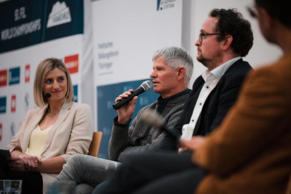 Die Wintersportstätten in Oberhof legen einen großen Fokus auf das Thema Nachhaltigkeit und Energie. Dr. Schubert führt hierbei als Ziel an, dass die Sportanlage bis 2025 klimaneutral sein soll. Bisher wird neben der Nutzung von Photovoltaikanlagen auch die Abwärme von der Rodelbahn verwendet, um Energie und Wärme zu erzeugen. Hierbei entsteht sogar ein Überschuss, dessen Weitergabe an einen neuen Hotelstandort in Oberhof geplant ist. Darüber hinaus wird zurzeit geprüft, inwiefern Möglichkeiten der Erzeugung von Windenergie wahrgenommen werden können. Zudem bestehen Überlegungen zur Förderung der Nachhaltigkeit darin, dass die Rennschlittenbahn im Oktober noch nicht genutzt wird, der Nutzungszeitraum dafür den März mit einschließt. Des Weiteren wird eine längere Nutzung der Schneehalle in Betracht gezogen, anstatt zu früh mit der künstlichen Beschneiung zu beginnen. Hubert Schwarz merkt an, dass Nachhaltigkeit noch viel mehr ist. Sie bezieht sich auch auf die Gesellschaft und eine nachhaltige Förderung der Gemeinschaft. Für ihn ist es wichtig, dass weiterhin die sportliche Betätigung der Kinder gefördert wird.