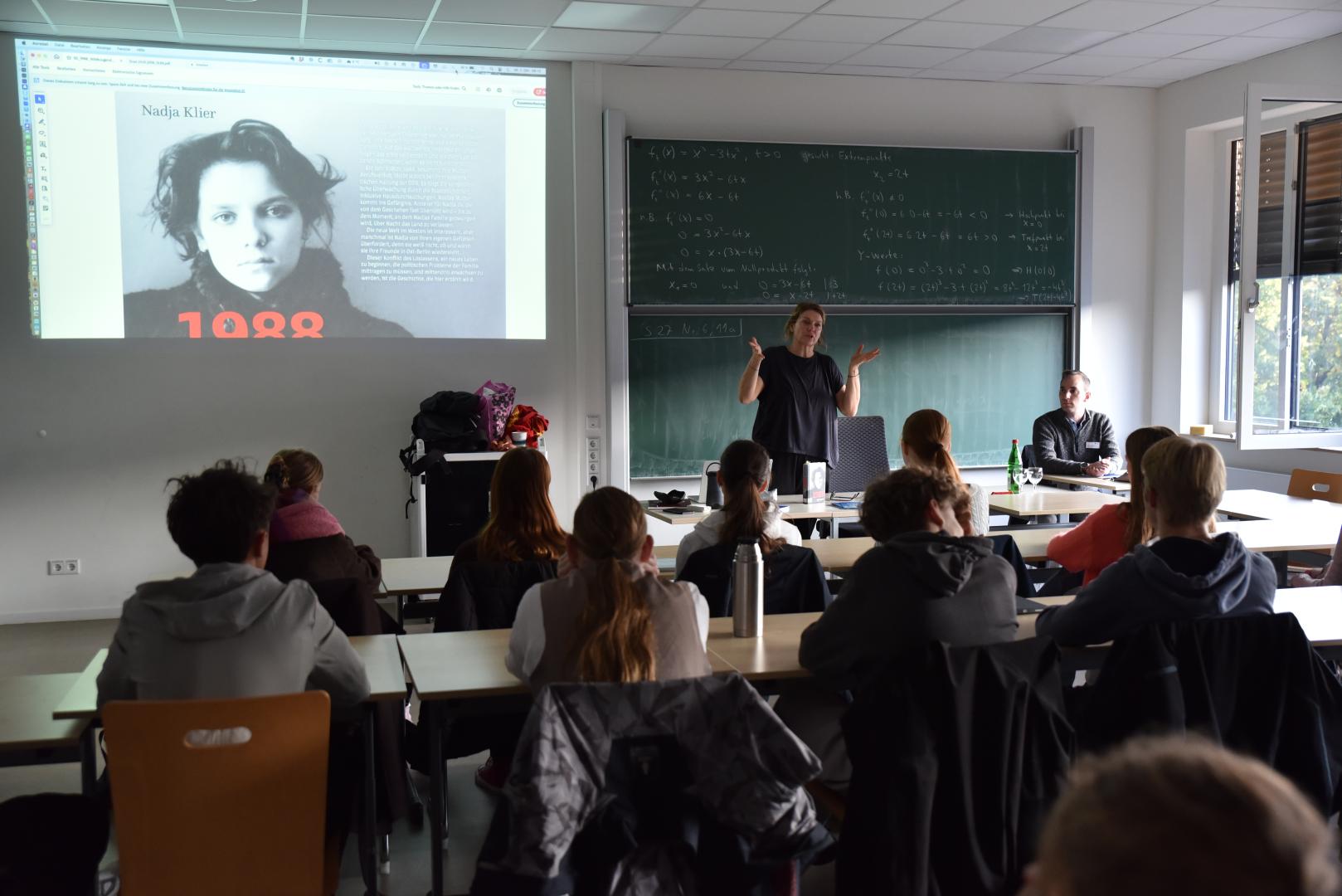 Am 1. Oktober 2025 hatte das Gymnasium Großburgwedel besonderen Besuch: Nadja Klier, Autorin, Fotografin und Zeitzeugin, war zu Gast, um mit Schülerinnen und Schülern über ihre Jugend in der DDR zu sprechen.
