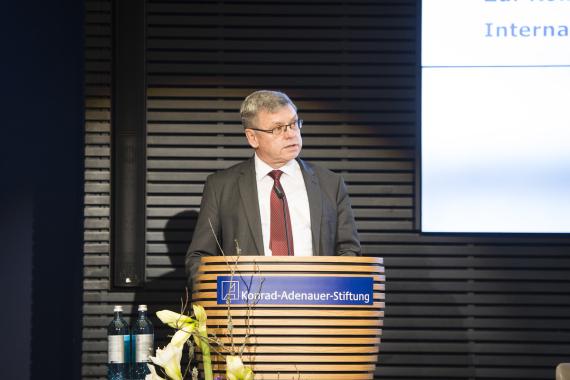 Seit Jahren fordern einige EU-Mitgliedsstaaten eine gemeinsame Verteidigungspolitik. Nun haben sich 23 von ihnen auf ein Konzept geeinigt und ein Grundsatzdokument zur Notifizierung unterzeichnet. Sie wollen auf EU-Ebene gemeinsame Wege in Verteidigungsfragen gehen und dadurch Abstimmungsprozesse beschleunigen. Kritiker sehen in dieser sogenannten „Ständigen Strukturierten Zusammenarbeit (SSZ) oder auch „Pesco“ genannt, zunächst ein Konkurrenzprodukt zur Nato. Dr. Norbert Röttgen, Vorsitzender des Auswärtigen Ausschusses im Deutschen Bundestag, weist diesen Vorwurf zurück. „Die Pesco steht nicht in Konkurrenz zur Nato, sondern zielt darauf ab, den europäischen Teil der Nato-Verbündeten handlungsfähiger zu machen“, sagt Röttgen. Bisher sei diese Notifizierung aber nur eine Willensbekundung. Röttgen begrüßt diesen Schritt der Mitgliedsstaaten und hofft auf konstruktive Umsetzungen in der Zukunft. Dr. Rüdiger Huth, stellvertretender Leiter der Abteilung Politik des Verteidigungsministeriums widersprach ebenfalls den Kritikern. Die Nato bleibe als Anker der Sicherheit bestehen. „Wir wollen transatlantisch bleiben, aber den europäischen Pfeiler stärken“. Entscheidend sei nicht mehr nur Doktrinen festzulegen, sondern gemeinsame Prozesse schlussendlich bis in der Truppe hinein umzusetzen und sich in den politischen und wirtschaftlichen Prozessen enger miteinander abzustimmen. Die europäische Verteidigungsgemeinschaft soll die zivilen und militärischen Instrumente zusammenfassen.