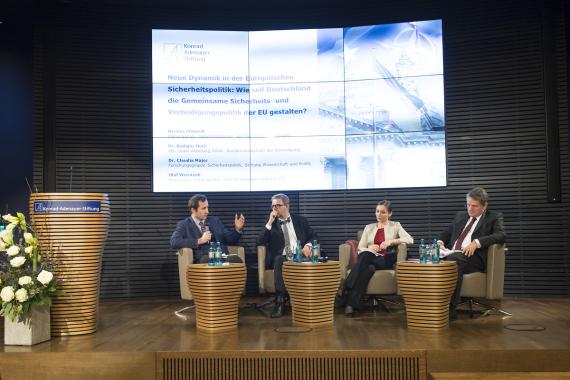 Bei aller Euphorie über das neu geschmiedete Sicherheitsbündnis mahnt Dr. Claudia Major von der Forschungsgruppe Sicherheitspolitik der Stiftung Wissenschaft und Politik vor Überschätzung. Es gebe Bereiche, die die Pesco nicht abdecken kann. „Aufgaben in den Bereichen Handels- und Wirtschaftspolitik, Sanktionen gegen Russland, Gestaltung der Energieversorgung oder Verhandlungen mit dem Iran kann die EU nur übernehmen, wenn sie es schafft in politische Einigkeit auftritt.“ Das Denken in „institutionellen Boxen“ müsse aufgebrochen werden. Es sei ein Zusammenspiel von Staaten und Industrie außerhalb der eingetretenen Pfade nötig.