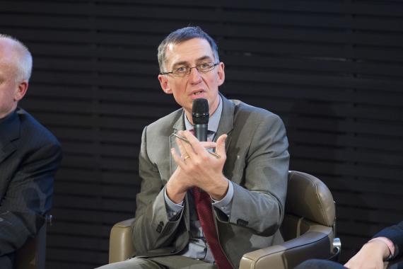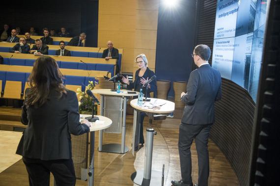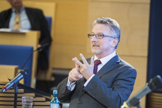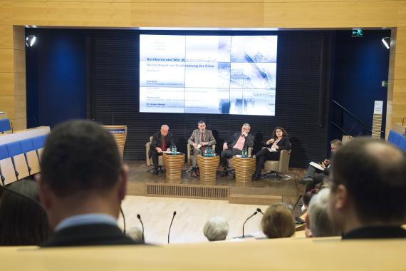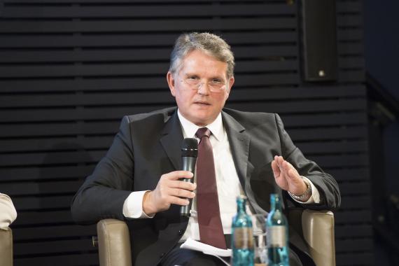 Viele Maßnahmen sind seit der Vorstellung des Weißbuchs zur Zukunft der Bundeswehr 2016 auf nationaler und europäischer Ebene auf den Weg gebracht worden, betont Dr. Rüdiger Huth, stellvertretender Leiter der Abteilung Politik des Verteidigungsministeriums. „Es gibt noch einen hohen Abstimmungsbedarf im Bereich der wehrtechnischen Industrie“, sagt Huth. Die Idee des europäischen Verteidigungsfonds beinhaltet eine materielle Stärkung und Unterstützung einer wettbewerbsfähigen Industrie auf europäischer Ebene. Er räumt ein, dass bei der Bundeswehr viele Jahre lang gespart wurde und nun zunächst die Sanierungsmaßnahmen greifen müssten. „Es braucht Zeit um die Lücken aufzufüllen um dann zu modernen Möglichkeiten der Sicherheits- und Verteidigungspolitik zu kommen“, sagt Huth.