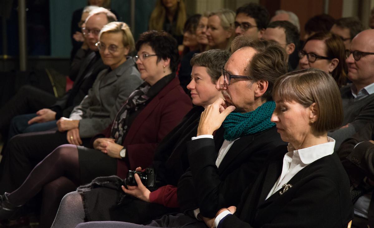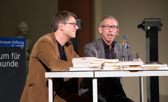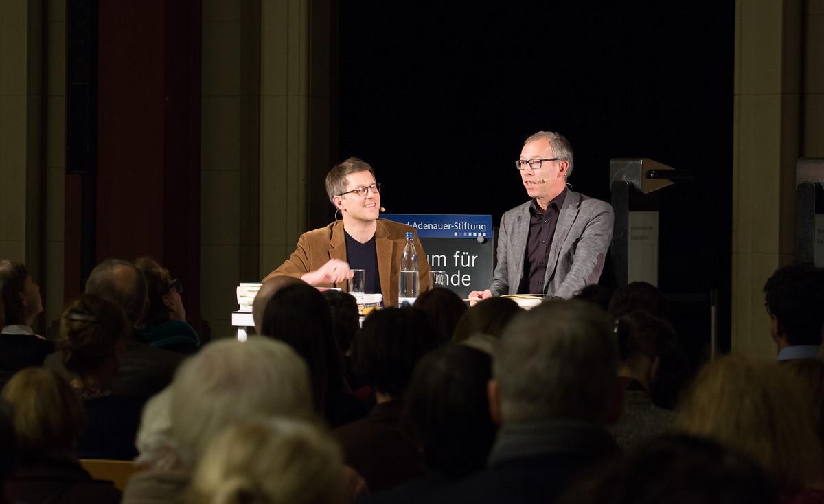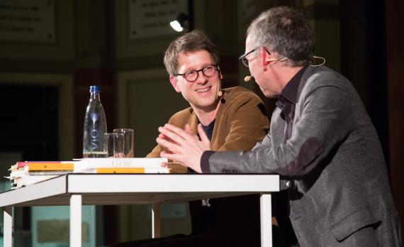 Jan Wagner stellte fremde und eigene Tiergedichte vor und sprach mit dem Moderator Prof. Dr. Michael Braun (KAS) über die Faszination von Anatomie, Biologie und Naturkunde für die Poesie. Bücher habe politische Schriften in einer Botanisiertrommel über die Landesgrenzen geschmuggelt und sein poetisches Seziermesser gerade an den scheinbar nebensächlichen, unauffälligen Dingen gewetzt. Auch heute komme es darauf an, die Größe der kleinen Dinge zu entdecken und zum Leuchten zu bringen. Das gelang mit Gedichten über Quallen und Pitbulls, Eulen und Krähen, über vergessene Wörter und erfundene Landschaften. Und das mit einer Lust an Sprachklang und Sprachkunst, die das Publikum mit lang anhaltendem Beifall quittierte.