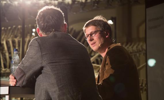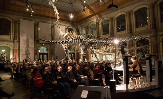 Im Oktober 2017 hat Jan Wagner, der früher auch von der Stiftung gefördert wurde, den renommierten Büchnerpreis erhalten. Das nahm der gastgebende Generaldirektor des Naturkundemuseums Professor Johannes Vogel zum Anlass, den Zuhörern anhand der Erforschung und Restaurierung der Saurierskelette den engen Zusammenhang von Naturwissenschaft und Poesie nahe zu bringen.