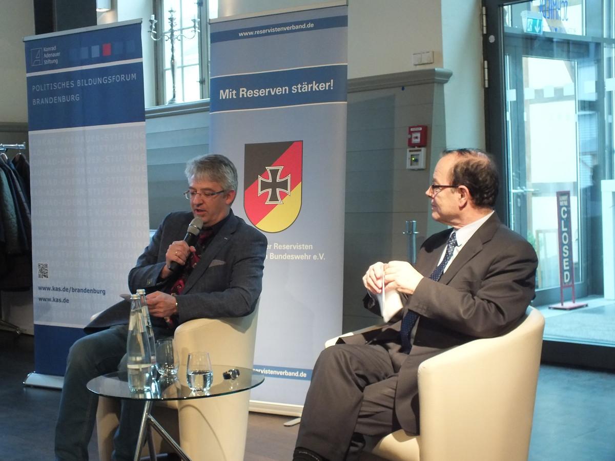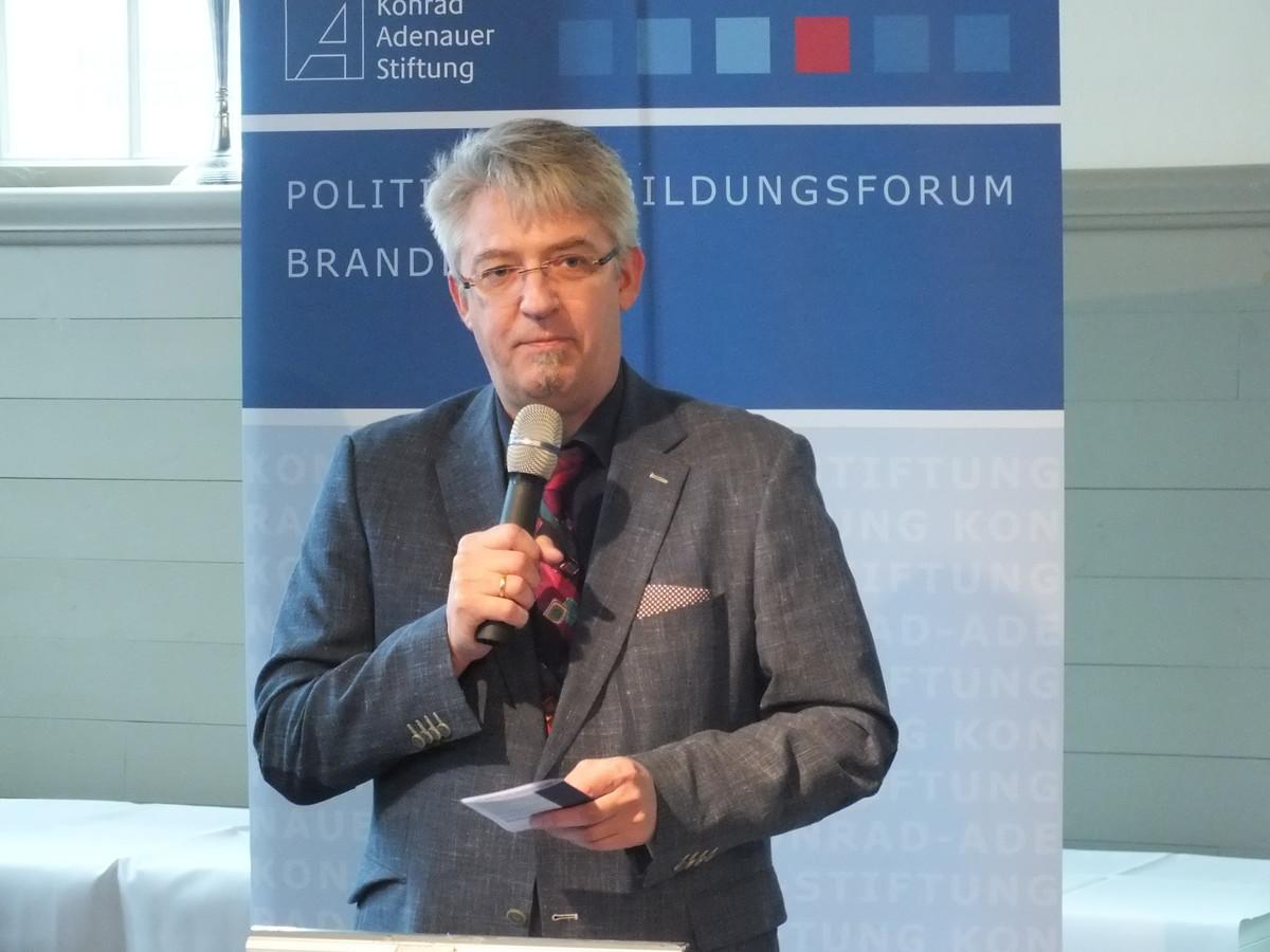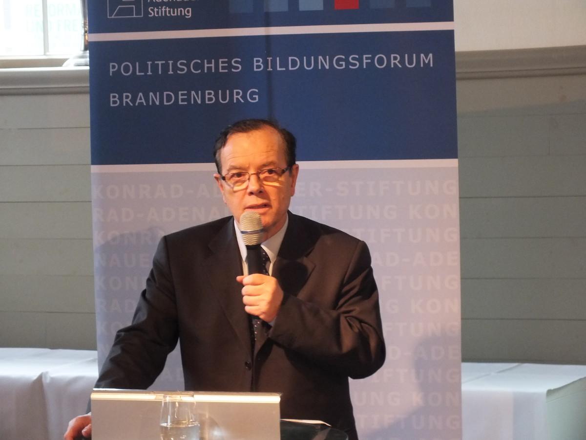 Die Veranstaltung des Politischen Bildungsforums Brandenburg der Konrad-Adenauer-Stiftung fand in Kooperation mit der Deutsch-Atlantischen Gesellschaft, der Gesellschaft für Sicherheitspolitik und dem Reservistenverband in Brandenburg statt. Ménudier referierte zum Thema „Neuanfang in Frankreich - Die Präsidentenwahl: Ergebnisse, Analysen, Folgen“ und betonte gleich zu Beginn, dass er stets gerne als Gast bei der Konrad-Adenauer-Stiftung sei und hob ihre Bedeutung als Akteur für Politische Bildung hervor.