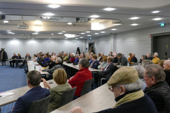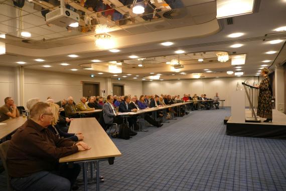 Schön hielt einen Vortrag über ihr Buch „Neustaat“ und die bundespoltischen Probleme der Verwaltung und Gesetzgebung. Laut einer Allensbach-Umfrage würden nur 4 von 10 Deutschen daran glauben, dass Deutschland auch in 10 bis 15 Jahren noch eine der führenden Wirtschaftsnationen der Welt sein wird. Vor 5 Jahren haben das noch 6 von 10 Deutschen geglaubt. Die Gründe für diesen verringerten Optimismus seien, neben schlechterer Bildung und vielen Negativmeldungen in der Presse, vor allem in der Bürokratie zu finden. Die Bürokratisierung von Unternehmertum und Ehrenamt habe immer weiter zugenommen, auch weil diverse „Bürokratieabbaugesetze“ kaum die gewünschte Wirkung entfaltet hätten. Dies führe dazu, dass die Zukunftsfähigkeit des Landes deutlich behindert werde, was unter anderem daran zu erkennen sei, dass keiner der großen „Plattformkonzerne“ aus Deutschland käme. Die Bundestagsabgeordnete aus dem Saarland und ihre Mitstreiter verstünden deshalb unter „Neustaat“ nicht nur einige Reformen, sondern ein ganzes Reform-Jahrzehnt, zur Entbürokratisierung und Innovationsförderung, vor allem im Bereich der staatlichen Strukturen, an dessen Ende ein agiler und zukunftsfähiger Staat stehe. Eine wichtige Maßnahme in diesem Prozess bestehe in der Möglichkeit des Personalaustausches zwischen verschiedenen Behörden, aber auch zwischen Staat und Wirtschaft, um Wissen zu teilen und neue Blickwinkel in die Verwaltung hineinzutragen.