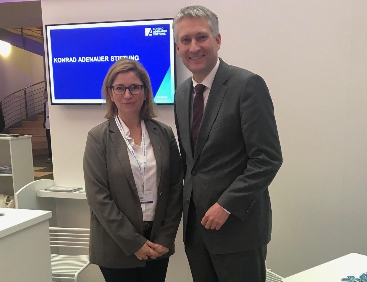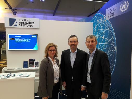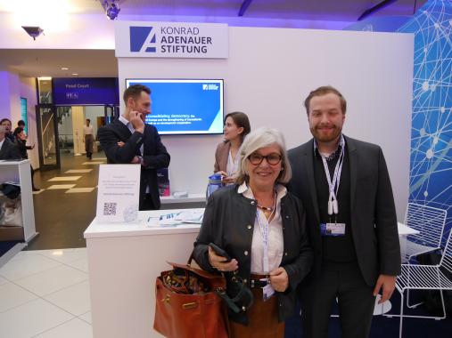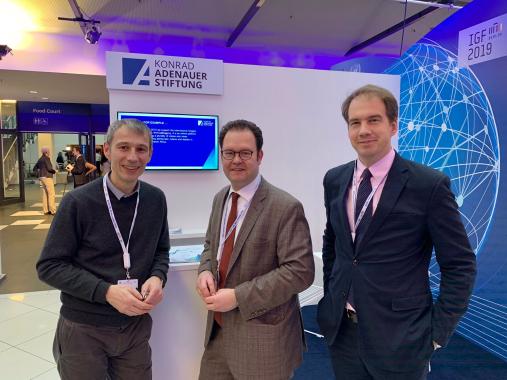 Die Konrad-Adenauer-Stiftung e.V. war nicht nur mit einem eigenen Stand auf dem IGF präsent, sondern bestritt am ersten Tag unter dem Titel „Open and Free and What. Visions for the Future of the Internet“ auch eine eigene Session mit internationalen Gästen sowie am zweiten Tag das Netzwerktreffen „Science meets Policy“. Zu den Teilnehmern des Panels und des Netzwerkevents zählten u.a. der Under Secretary General der Vereinten Nationen, Fabrizio Hochschild, Urs Gasser vom Digitalrat der Bundesregierung sowie Ronja Kemmer MdB, Obfrau der CDU/CSU-Fraktion in der KI-Enquete-Kommission, Vincent Bagiire, Staatssekretär des ugandischen Digitalministeriums und Carl-Christian Buhr, stellvertretender Kabinettschef der EU-Kommissarin Mariya Gabriel.