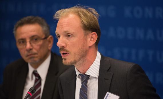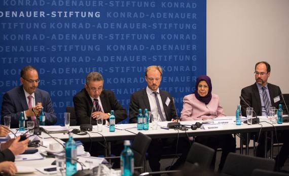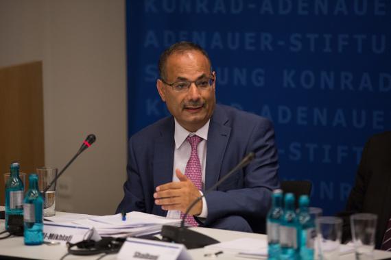 Michael Ohnmacht, Leiter des Referats Mittlerer Osten des Auswärtigen Amtes, sicherte der jemenitischen Bevölkerung die Unterstützung Deutschlands zu und sprach sich für einen umgehenden Waffenstillstand aus. Mit medizinischer Unterstützung und der Vermittlungs- und Aufbauarbeit verschiedener Organisationen solle geholfen werden. „Am Ende brauchen wir eine politische Lösung“, betonte Ohnmacht. Er begrüßte die Bemühungen der Vereinten Nationen, in dem Konflikt zu vermitteln. Ohnmacht sieht hingegen das Interesse und die Unterstützung des Irans an den Houthi-Rebellen kritisch. Dr. Abdulaziz Sager, Vorsitzender des Gulf Research Centers, bedankte sich für die Unterstützung und die besondere Verbindung zu Deutschland.