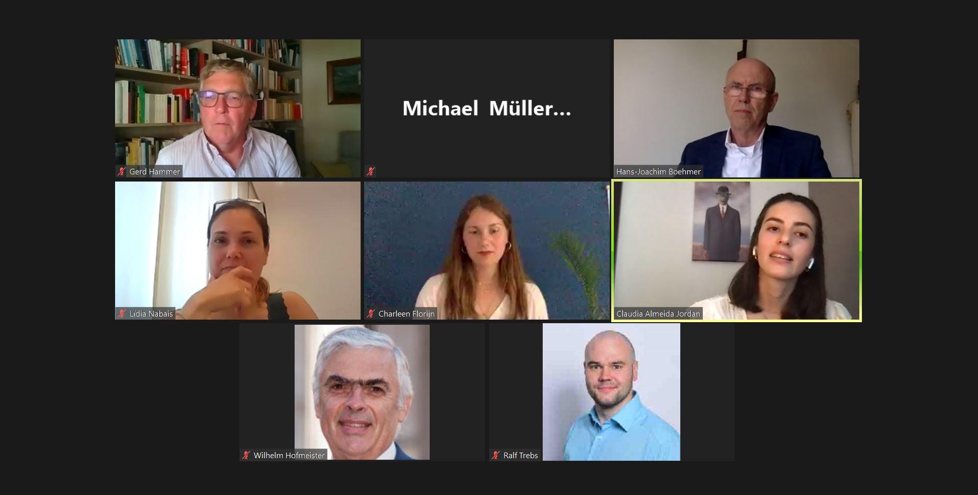 In ihrem Grußwort zu Beginn der Veranstaltung verwies die portugiesische Generalkonsulin in Düsseldorf, Frau Lídia Bandeira Nabais, auf die besondere Relevanz der bilateralen Beziehungen zwischen Deutschland und Portugal. Auch wenn das deutsch-portugiesische Verhältnis selten im Fokus der Öffentlichkeit stehe, so sei dessen Bedeutung keineswegs zu unterschätzen, so Nabais. Deutschland sei einer der wichtigsten Handelspartner des kleinen Landes im Südwesten Europas. Einen besonderen Fokus legte Nabais auch auf die aktuelle EU-Ratspräsidentschaft, die Portugal Anfang 2021 von Deutschland übernommen hat. Gemeinsam sei es gelungen die Corona-Pandemie weitgehend einzudämmen und mit den EU-Corona-Hilfen stünden nun die passenden Mittel bereit, um den wirtschaftlichen Aufschwung zu unterstützen.