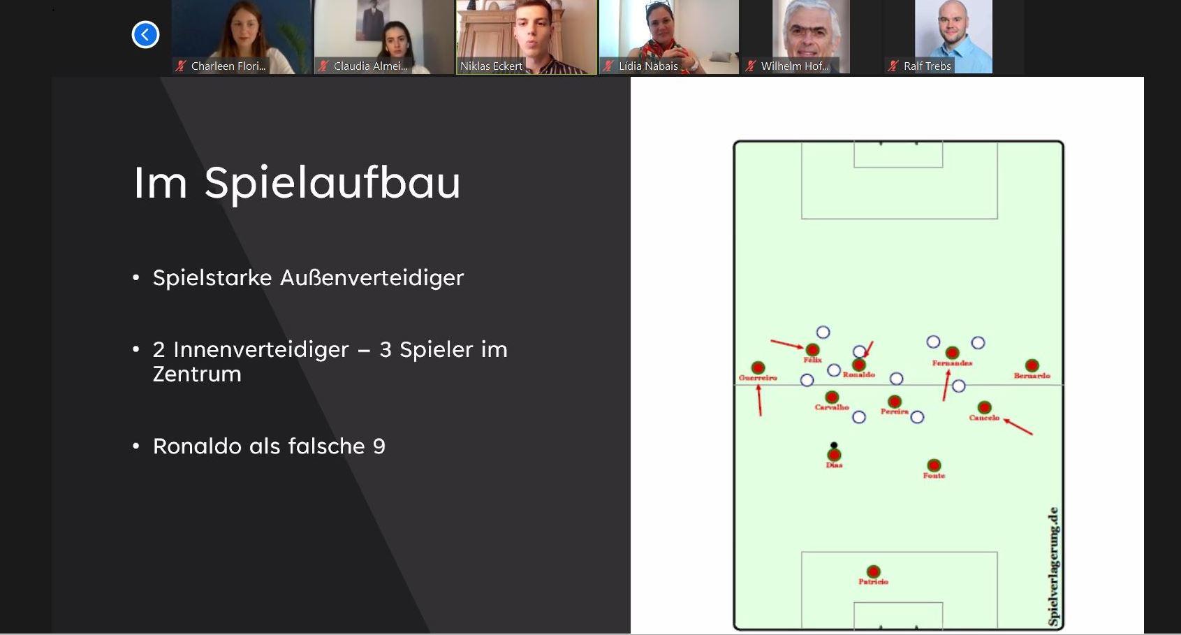 Um die Teilnehmerinnen und Teilnehmer auf das anstehende Fußballspiel zwischen Portugal und Deutschland einzustimmen, analysierte der Sportjournalist Niklas Eckert abschließend die sportliche Ausgangslage vor dem großen Duell. Eine klare Tendenz für das Spiel ließ sich bei der Tippabgabe nicht erkennen. Für Claudia Jordan war die Ausgangslage hingegen recht einfach. Als Deutsch-Portugiesin können sie mit jedem Ergebnis gut leben.