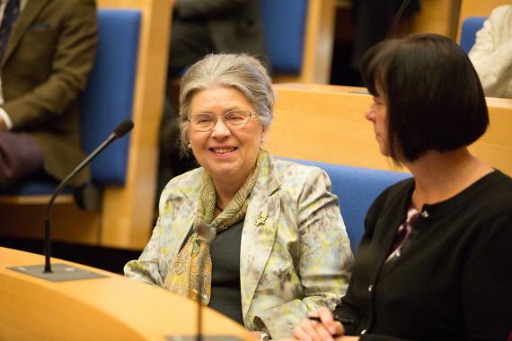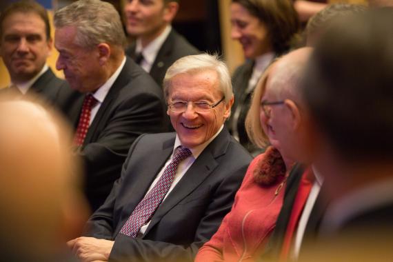 Pöttering zog Bilanz und richtete den Blick in die Zukunft. Europa stünde vor großen Herausforderungen, die unter anderem durch nationalistisch-populistische Parteien hervorgerufen werden. „Wir müssen als demokratische Parteien eine kluge Verbindung zwischen Heimat, Vaterland und Europa schaffen“, appellierte er. Nur im Zusammenspiel könnten die Hürden gemeistert werden. Die Stiftung stünde in der Verantwortung, ihre Werte und die Würde des Menschen zu vertreten. Ehe er mit lang anhaltendem Applaus verabschiedet wurde, bedankte er sich bei seinen Weggefährten, dem Vorstand, Kuratorium, seiner Familie und bei den Mitarbeitern der Stiftung. „Die Adenauer-Stiftung ist keine Organisation, sondern wir sind eine Gemeinschaft“, sagte er. „Es war eine tolle Zeit!“
