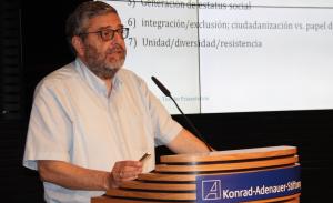 „Fußball verbindet die Menschen“, so auch die Meinung von Frank Priess, stellvertretender Leiter der Hauptabteilung Europäische und Internationale Zusammenarbeit und bekennender Bayern-Fan. Die Familie Priess ist das lebende Beispiel dafür, wie der Sport Menschen über Vereins- und Ländergrenzen zusammenbringen kann. Bei der WM in Russland wird nicht nur die deutsche Nationalmannschaft angefeuert, sondern auch Argentinien und Kolumbien. Priess weist aber auch auf die Schattenseiten des Fußballs hin: Gewalt, Rassismus und die zunehmende Kommerzialisierung sind nur einige Schlagwörter, die mit dem Fußball immer wieder in Verbindung gebracht werden. Als Stiftung, die sich stark mit dem Thema Demokratieförderung beschäftige, müsse man auch über die Standards bei der Vergabe von Weltmeisterschaften dikutieren, so Priess. Was kann der Fußball gesellschaftlich und politisch leisten und wie begegnen wir den negativen Auswirkungen? Die Arbeitsgemeinschaft Deutsche Lateinamerikaforschung (ADLAF) hat bereits im Jahr 2016 den Plan gefasst, dass Thema Fußball und Lateinamerika wissenschaftlich zu beleuchten. „Fußball reißt Menschen auf der ganzen Welt mit“, sagt Thomas Fischer, Vorsitzender der ADLAF bei der Auftaktveranstaltung der Fachtagung. Der Fußball sei eine Sportart, die in fast allen Ländern der Welt eine Rolle spiele und die Menschen auf allen sozialen Ebenen begeistere. Positiv sieht Fischer die Entwicklung, dass auch immer mehr Mädchen ihre Begeisterung für den Fußball entdecken. Die sozial- und geisteswissenschaftliche Auseinandersetzung mit dem Thema Fußball steht jedoch noch ganz am Anfang. Das Tagungsprogramm der dreitägigen Tagung zeigt die Vielfalt des Themas: Auf insgesamt sieben Panels diskutieren Wissenschaftler aus Europa, Lateinamerika und den USA u.a. über die Auswirkungen von Mega-Events wie Weltmeisterschaften, die Entwicklung von Geschlechterrollen und Rassismus im Fußball.