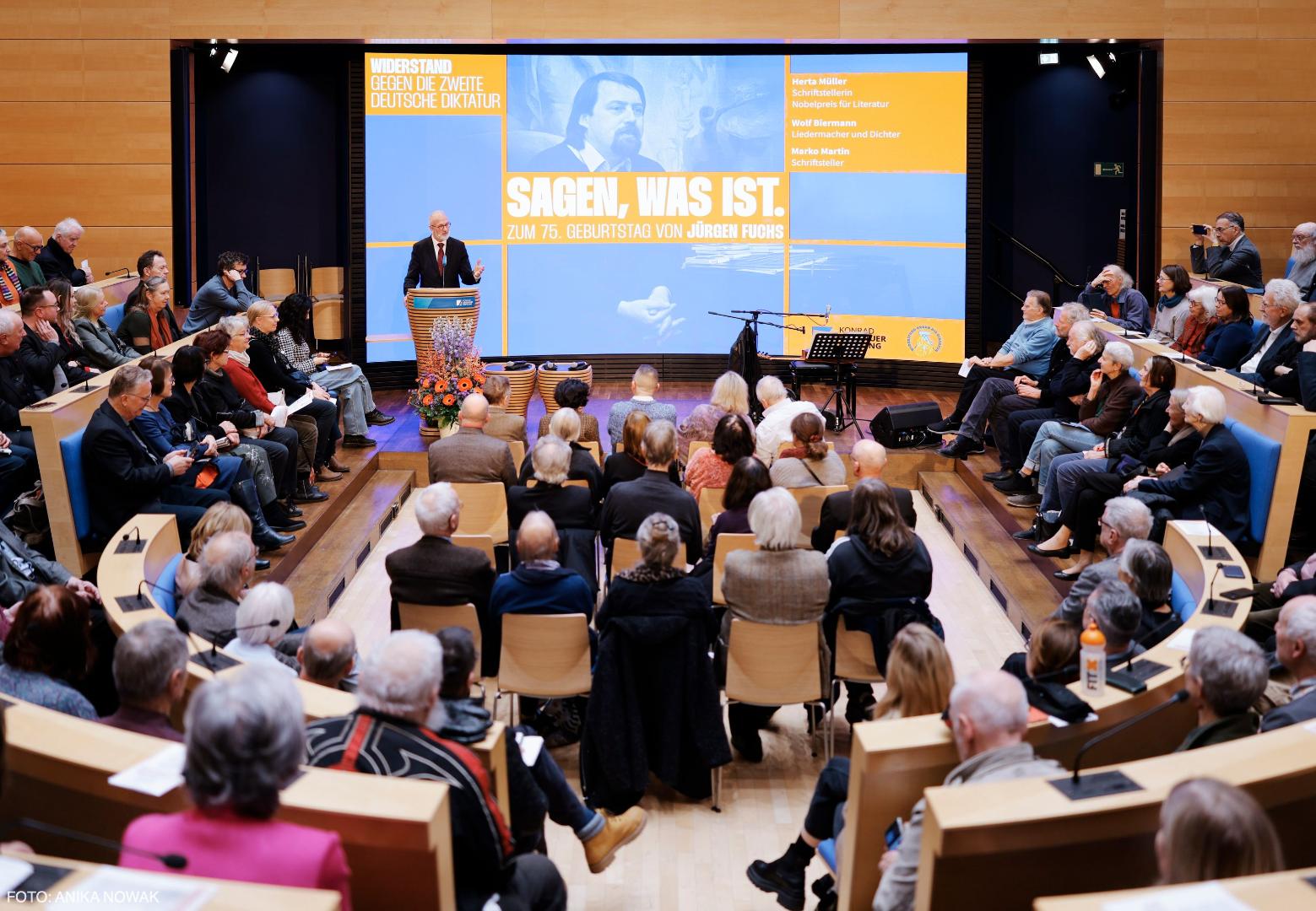Es war ein Abend der leisen Töne und zugleich ein Abend voller Unruhe, jener produktiven, erinnernden Unruhe, die Jürgen Fuchs selbst in seinen Texten stets ausgelöst hat. Es war ein Abend, der in seiner Stimmung zwischen Dankbarkeit und tiefer Melancholie schwebte. Ein Abend, der Jürgen Fuchs nicht nur erinnerte, sondern ihn noch einmal spürbar machte – als Stimme, als Gewissen, als einer, der „sagte, was ist“. Am 3. Dezember 2025 versammelten sich Weggefährten, Freunde, Leserinnen und Leser sowie politisch Interessierte in der Akademie der Konrad-Adenauer-Stiftung, um an den Schriftsteller zu erinnern, der wie kaum ein anderer dem Unrecht der SED-Diktatur seine unbestechliche Sprache entgegengesetzt hat, der der SED-Diktatur den Spiegel vorhielt und dafür mit Repression, Haft und schließlich Ausweisung bezahlt hat. Er starb viel zu jung. Und doch wirkt er weiter.