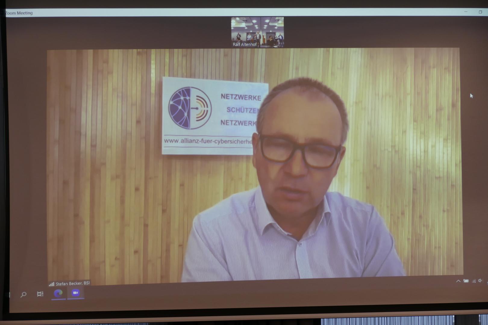 Stefan Becker startete seinen Kurzvortrag mit der Warnung, dass jeder zum Opfer von willkürlichen oder sogar gezielten Cyberangriffen werden könne und deshalb gerüstet sein müsse. Seiner Meinung nach sei Cybersicherheit und der professionelle Umgang mit Attacken eine „Schlüsselkompetenz der Zukunft“, ohne die Unternehmen nicht länger überlebensfähig sein würden.