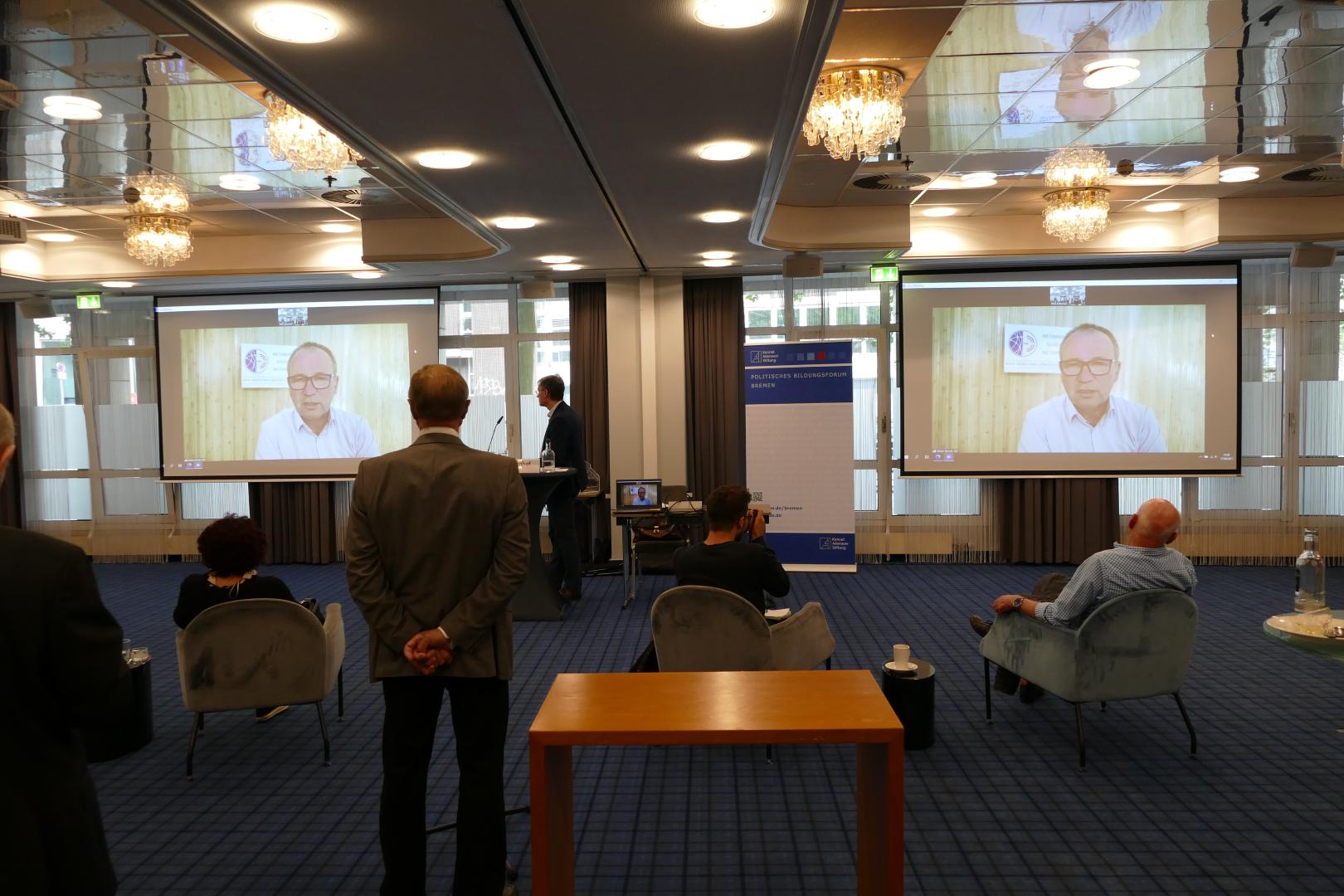 Zu Beginn stellte Ralf Altenhof, Leiter des Politischen Bildungsforums Bremen, die Folgen von Cyberattacken dar, die jährlich für die deutsche Wirtschaft einen Schaden von mehr als 100 Milliarden Euro verursachen. Rund 85 Prozent aller großen und mittelständigen Unternehmen würden regelmäßig aus dem Internet attackiert. Er wies auf die große Gefahr hin, die von unzureichendem Schutz gegen Cyberattacken ausginge und warf die Frage auf, wie sich Unternehmen, aber auch jeder Einzelne, konkret vor solchen Angriffen schützen könne.