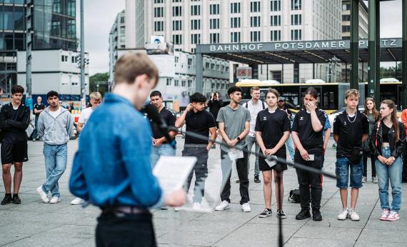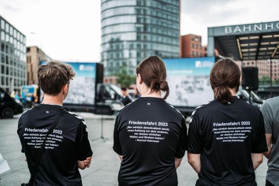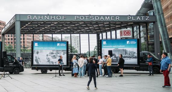 Im Anschluss an die Rede trugen Berliner Schülerinnen und Schüler unter dem Motto „Für die Freiheit!“ Auszüge aus Zeitzeugenberichten vom 17. Juni 1953 sowie Namen der Opfer des SED-Regimes vor, um uns mit den persönlichen Erfahrungen, dem Widerstand und dem Leid der Menschen von damals zu verbinden und uns daran zu erinnern, welchen Preis viele für Freiheit und Demokratie zahlen mussten. Um die Erinnerung an den 17. Juni 1953 und an das mutige Aufbegehren der Bürgerinnen und Bürger in der DDR in die gesamte Stadt und das Bewusstsein vieler Menschen zu tragen, starteten nach Ende der Gedenkveranstaltung mehrere Fahrzeuge am Potsdamer Platz mit großen Plakaten, die Fotos der damaligen Orte und Ereignisse zeigen.