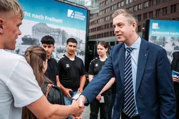 Der Jahrestag zeige, so Evers, dass Freiheit nicht selbstverständlich sei; er führe immer wieder vor Augen, „dass die Werte, für die die Menschen auf die Straßen gingen – Wunsch nach Freiheit, Demokratie, Selbstverwirklichung – nicht vom Himmel fallen“. Gerade deshalb denke man an diesem Tag auch besonders an die Menschen in der Ukraine, die heute für ihre Freiheit, für Frieden kämpfen. „Das Erbe des 17. Juni liegt in unseren Händen“, betonte Evers abschließend.