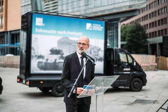 „Die Entschlossenheit und der Mut der Menschen, gegen die Unterdrücker auf die Straße zu gehen, muss uns Vorbild sein“, machte Bürgermeister und Senator Stefan Evers in seiner Rede deutlich. Es sei wichtig, die Erinnerung an die damaligen Ereignisse wachzuhalten – und Berlin komme dabei eine besondere Verantwortung zu.