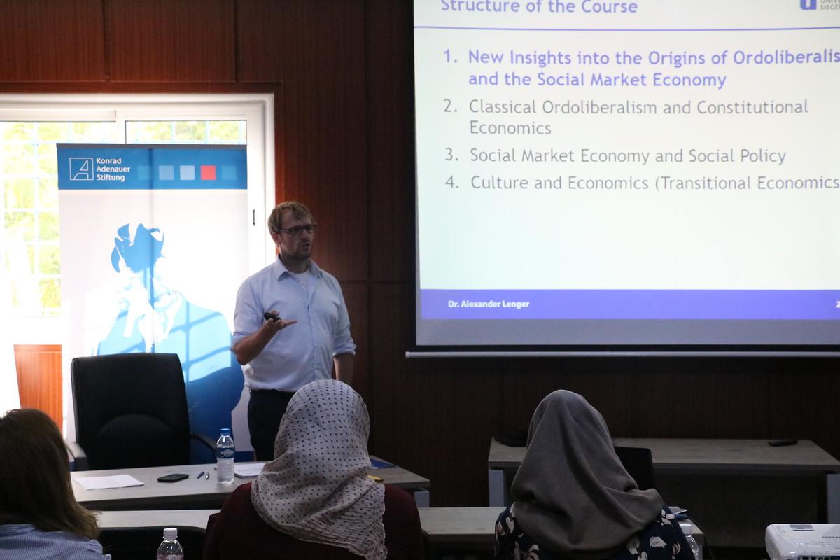 Das Seminar wurde von Professor Alexander Lenger geleitet, der die Studenten in zwei Tagen animierte und ihnen das System der sozialen Marktwirtschaft näherbrachte.