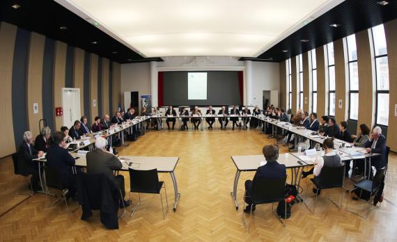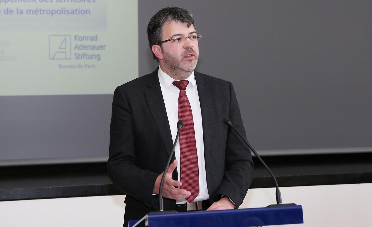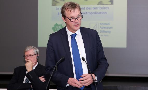 Gérard Dériot, Senator des Departements Allier und Präsident der Fédération d‘Élus Bourbonnais (FEB), zeigte sich in seinem Einführungsvortrag ähnlich entschlossen: „Wir kämpfen dagegen an, zu einem weiteren verlassenen Landstrich zu werden“. Für ihn ist der große Widerspruch zwischen Stadt und Land jedoch „längst überholt“. Städter würden sich genauso nach Lebensqualität und Ruhe sehnen wie Menschen auf dem Land. Im Gegenzug verlangen die Menschen im ländlichen Raum dieselben Konsumgüter und Dienstleistungen wie in der Stadt. Doch gerade in den letzten Jahren seien besonders die Kommunen von Investitionsstopps und Einsparungen betroffen gewesen, die u.a. dazu geführt haben, dass der „technologische Graben“ zwischen Stadt und Land größer geworden sei. Als ehemaliger Apotheker sieht Gérard Dériot die Abwanderung von medizinischem Fachpersonal in die großen städtischen Krankenhäuser mit Sorge: „Wenn Gesundheitsdienstleistungen abwandern, wird es auf dem Land sehr schnell problematisch.“ Auf der Suche nach Lösungsvorschlägen ist für ihn der intensive Austausch mit Kommunalpolitikern aus anderen europäischen Ländern besonders wichtig, denn so entstehe die Möglichkeit, Dinge aus einem ganz neuen Blickwinkel zu betrachten. Diese „fruchtbare Kooperation“ zwischen Kommunalpolitikern aus Deutschland und Frankreich, die im letzten Jahr beim ersten Deutsch-Französischen Kommunalkongress entstanden ist, leiste einen wichtigen Beitrag und sollte daher unbedingt fortgesetzt werden.