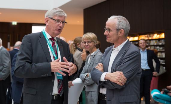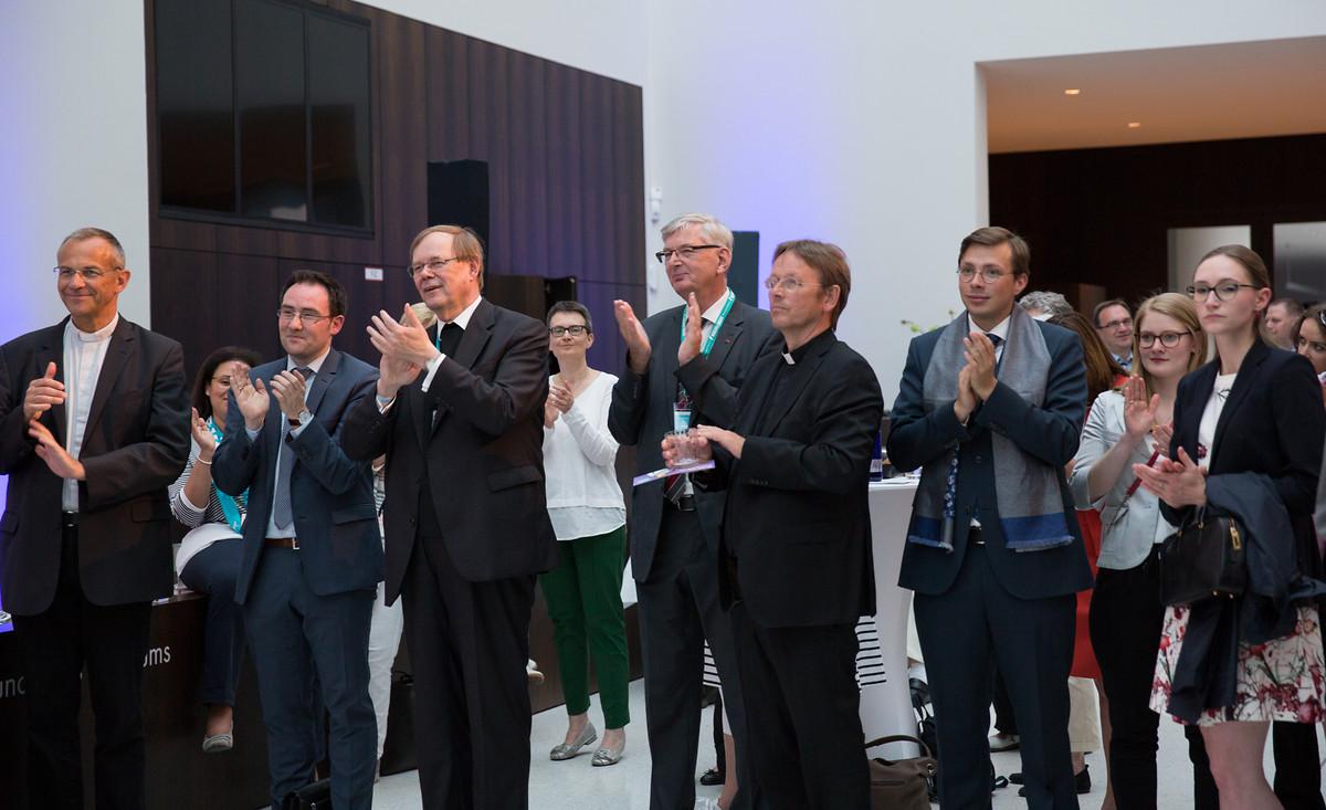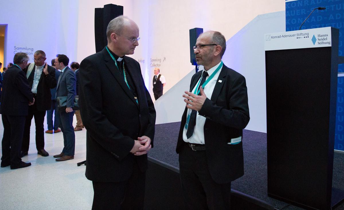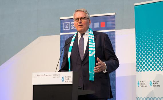 In seiner Begrüßung verwies der Vorsitzende der Konrad-Adenauer-Stiftung, Prof. Dr. Norbert Lammert, auch auf die Entwicklungen und die Ereignisse der vergangenen Tage. "Die Suche nach Frieden ist die dringendste, aber auch schwierigste Herausforderung der Menschheit", betone Lammert. Diese Suche beschränke sich aber nicht nur auf das bilaterale Verhältnis verschiedener internationaler Länder, sondern betreffe auch den Umgang miteinander in der Gesellschaft. Im Vorfeld des Christentreffens hatte es wegen einer Einladung eines AfD-Vertreters zu einer Podiumsdiskussion Kritik gegeben. Lammert räumte ein, dass diese Frage nicht streitfrei hätte gelöst werden können. Aber von den beiden jeweils schwierigen Entscheidungen, wurde die weniger falsche Entscheidung getroffen, sagte der Vorsitzende. Vor zwei Jahren hatten die Veranstalter des Katholikentags in Leipzig AfD-Politiker auf Podien noch ausgeschlossen.