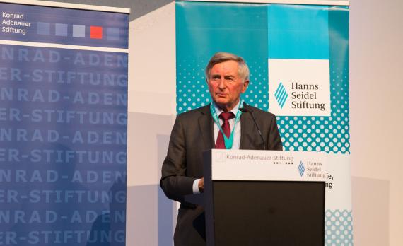 Europa stehe vor großen Herausforderungen, die sich insbesondere im Populismus manifestierten. Für Alois Glück, stellvertretender Vorsitzender der Hanns-Seidel-Stiftung und ehemaliger Landtagspräsident, ist es an der Zeit für eine geistige Auseinandersetzung und Rückbesinnung auf christliche Werte. Dabei schreibt er den Stiftungen eine besondere Rolle zu. „Sie müssen in diese Auseinandersetzungen hineingehen, die unterschiedlichen Positionen reflektieren und in der Debatte die Diskussionen prägen“, forderte Glück. Gerade in Krisenzeiten müsse sich die Rolle der Stiftungen neu entfalten.
