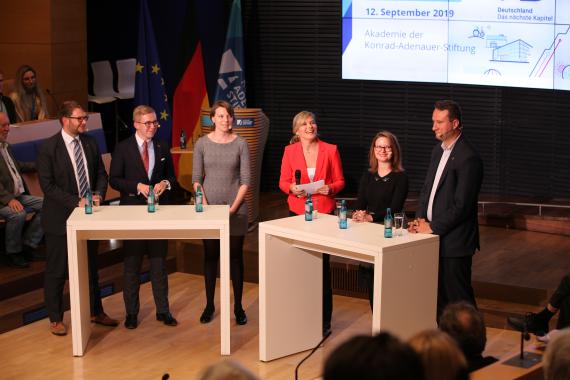 „Wir wollen nicht irgendwelche Negativspiralen bedienen, Pessimismus ist unsere Sache nicht. Wir sind überzeugt von Chancen“. Mit diesen Worten hatte Michael Thielen, Generalsekretär der Konrad-Adenauer-Stiftung, schon am frühen Nachmittag die Zukunftskonferenz am Tag der KAS eröffnet. Sicherheit, Innovation und representative Demokratie seien die drei Kernthemen der Stiftung für das Jahr 2020, so Thielen. Die Mitglieder der Jungen Gruppe der Unions-Bundestagsfraktion Marian Wendt, Mark Hauptmann, Ronja Kemper, Emmi Teulner und Philipp Amthor vertraten während der Veranstaltung beim Austausch mit dem Publikum ihre Positionen: Nämlich die Notwendigkeit eines guten Sicherheitsapparats, einer besseren wirtschaftlichen Bildung an den Schulen, mehr Investitionen in Künstliche Intelligenz, einer Umstrukturierung des Pflegesystems oder auch einer intensiveren Leitkultur-Debatte.