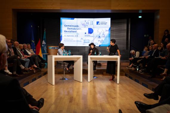 Über den Begriff der politischen Mitte diskutierten anschließend Annegret Kramp-Karrenbauer, Vorsitzende der CDU und Bundesministerin der Verteidigung, und Diana Kinnert, Unternehmerin und Autorin.
