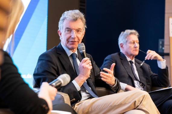 Im anschließenden Gespräch diskutierten Dr. John Chipman, Direktor des International Institute for Strategic Studies (IISS) und Botschafter Dr. Christoph Heusgen, Vorsitzender der Münchner Sicherheitskonferenz. Heusgen schloss sich der Forderungen von Merz nach einem Nationalen Sicherheitsrat an und hob mit Blick auf das 2%-Ziel hervor, dass es beim kommenden NATO-Gipfel in Vilnius vermutlich darüber hinaus gehen werde, weshalb es problematisch sei, wenn sich die Koalition nun weigere, den Forderungen des neuen Bundesverteidigungsministers Boris Pistorius nach zusätzlichen 10 Milliarden Euro für den Verteidigungshaushalt nachzukommen.